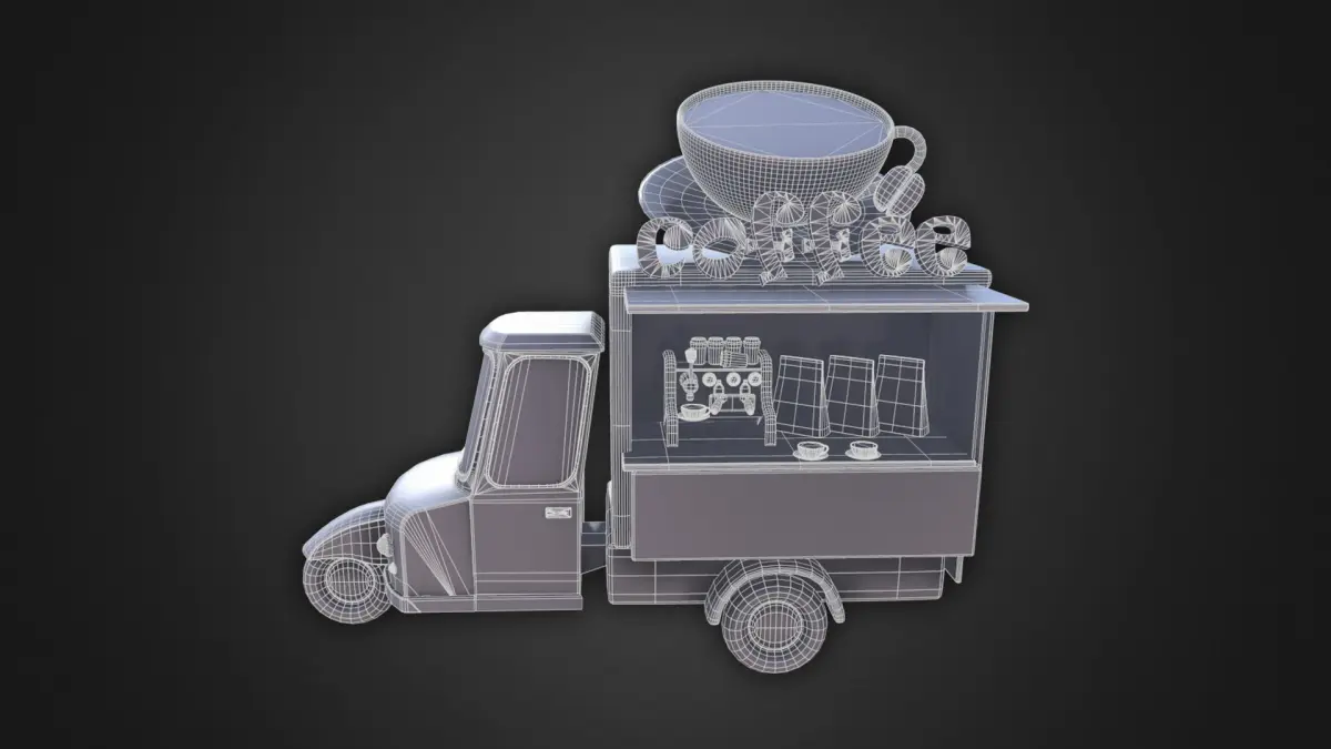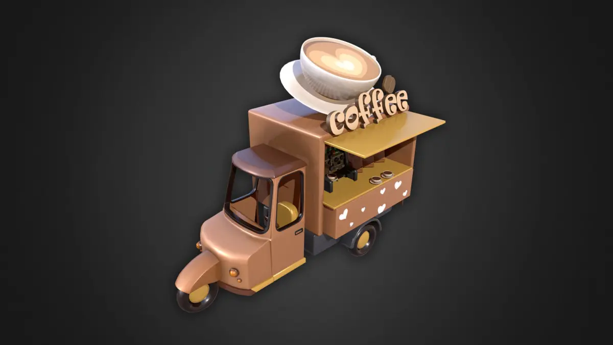 Asset - Cartoons - Food Car - Tricycle Coffee 3D model
