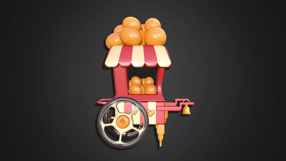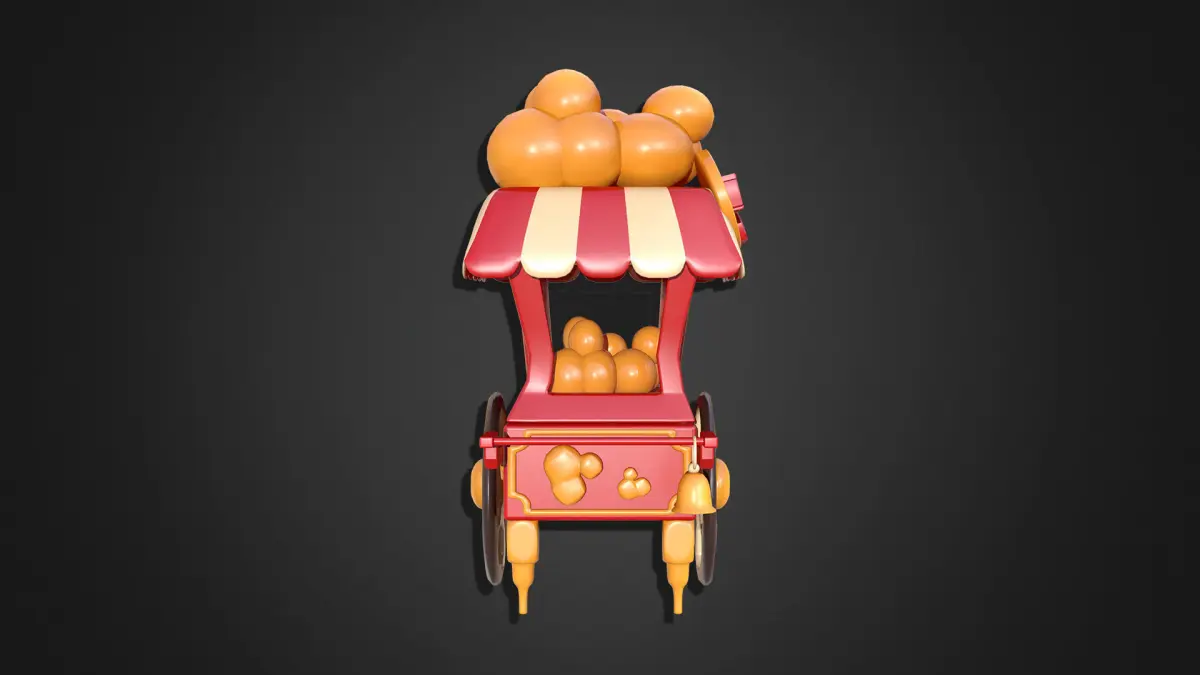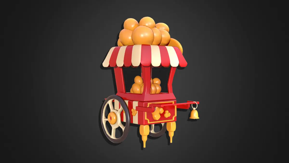 Asset - Cartoons - Food Popcorn Cart 3D model