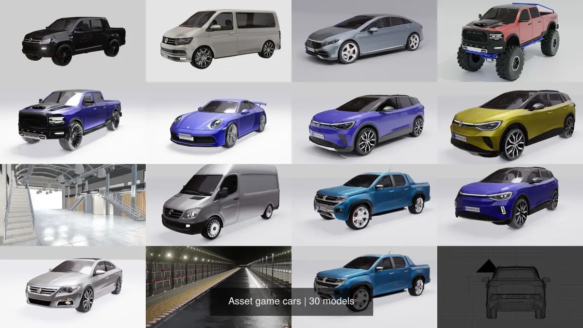 With precise and realistic details of each component of the vehicle, from the tires to the body. They include high-quality textures. In addition, they are fully equipped with additional elements such as tracks, curves, stands and workshops so that you can create a complete scenario for your projects. Our templates are easy to use and neatly arranged so you can easily find what you need. They are compatible with a variety of game engines and 3D animation programs, making them ideal for both professional projects and game enthusiasts.