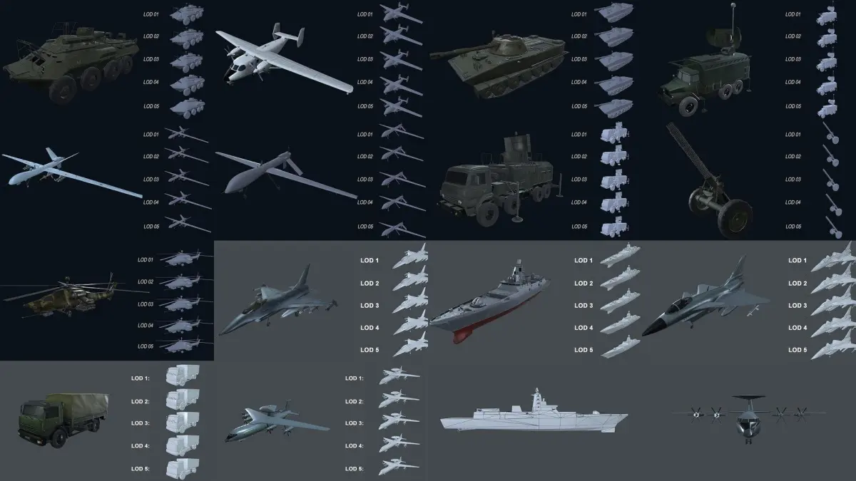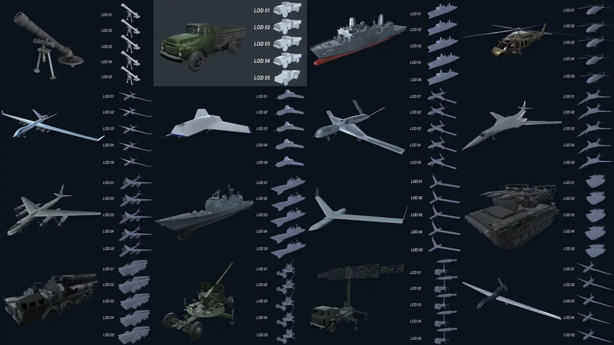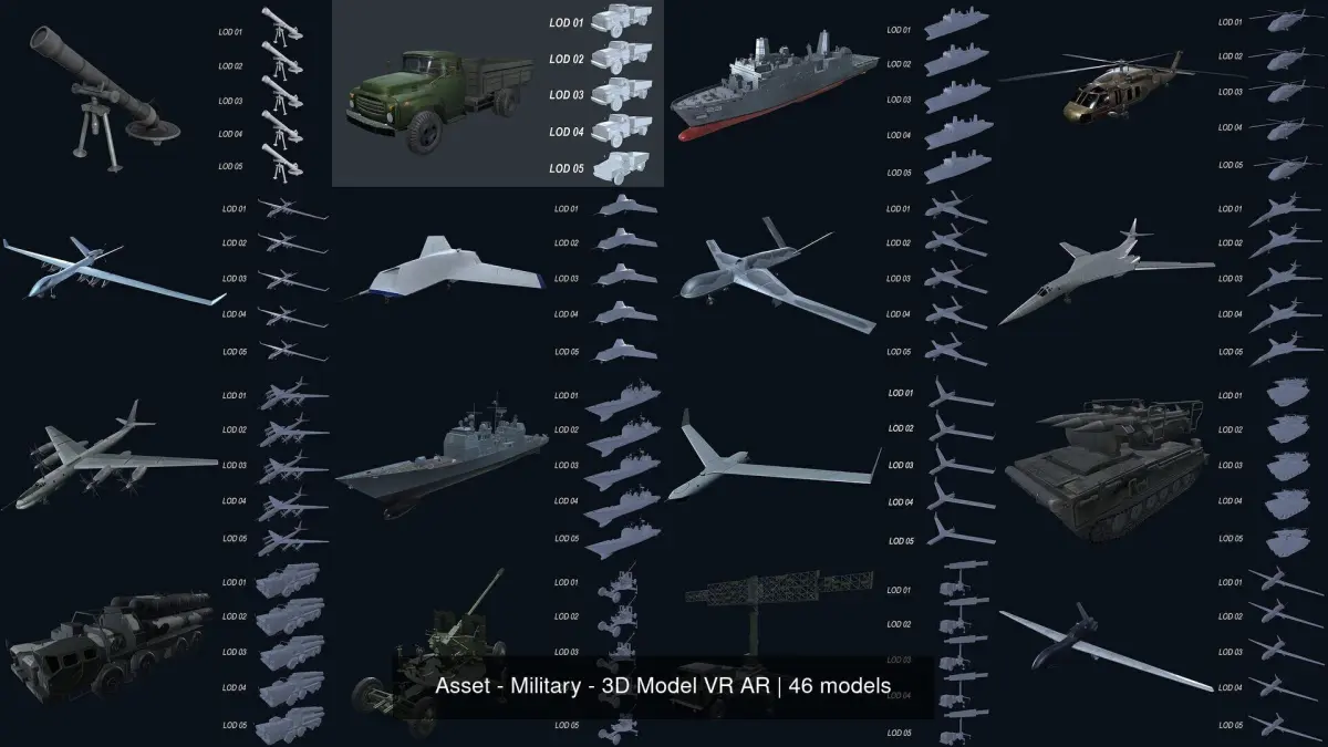 - The model consists of 05 LOD with decreasing number of polygons at each LOD.