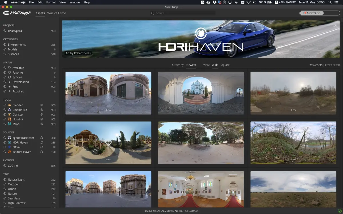 With Asset Ninja, using your favorite CC0 assets has never been easier. Browse through your favorite asset libraries, download, and send it to your favorite 3D software. It's a breeze!