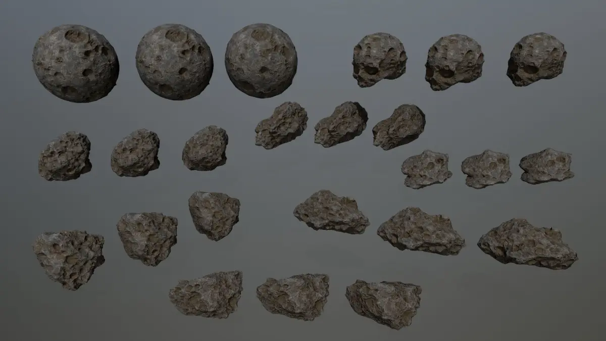 Asteroid_1.........................3642 polygon. ...........1823 vertices. Asteroid_1_Lod_1.............1874 polygon. ............936 vertices.Asteroid_1_Lod_2.............812 polygon. .............408 vertices.