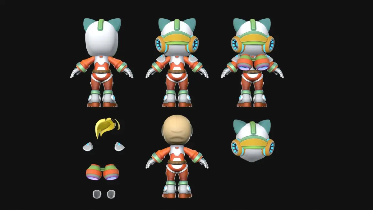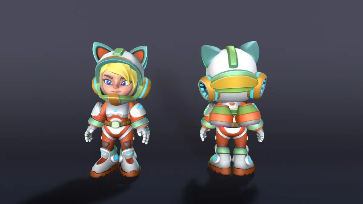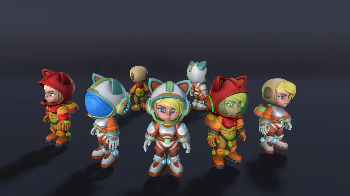 Modular animated Astronaut Girl character with simple facial rig: for animation, cartoons, games, etc.