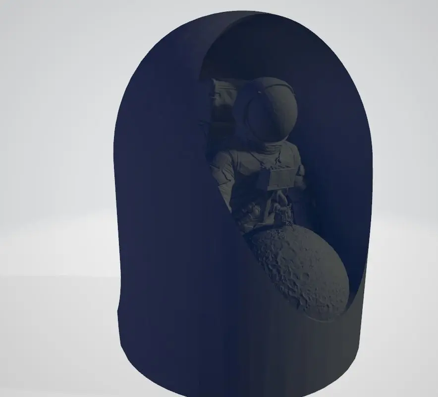 The Mini version is easily put together. Everything just slides together and then a small screw gets inserted into the bottom and you're done. The Large version is assembled the same way but doesn't need a screw. Designed to be printed with Resin printers but can be printed with FDM printers as well, although I can't promise you'll get the same great details as you would with resin, like the small moon lander or moon craters. For resin printers, everything has been designed where it doesn't need any supports if printed upright. Same might be possible with FDM printers because the overhangs are very small (Although the arch at the very top might need some). I print the diorama insert piece in clear resin and don't hollow it out. It's a solid piece. I found it looked better that way. Then I print the shell and base in white and spray paint them.
