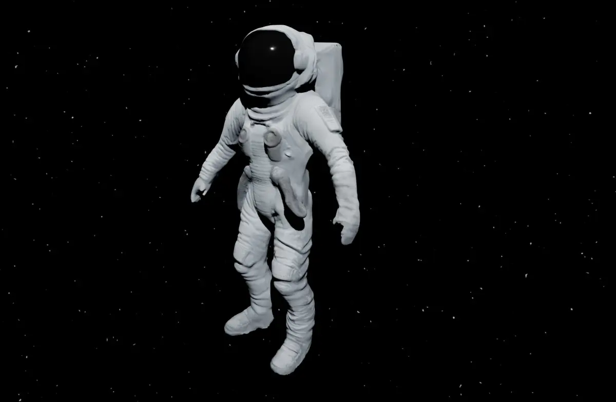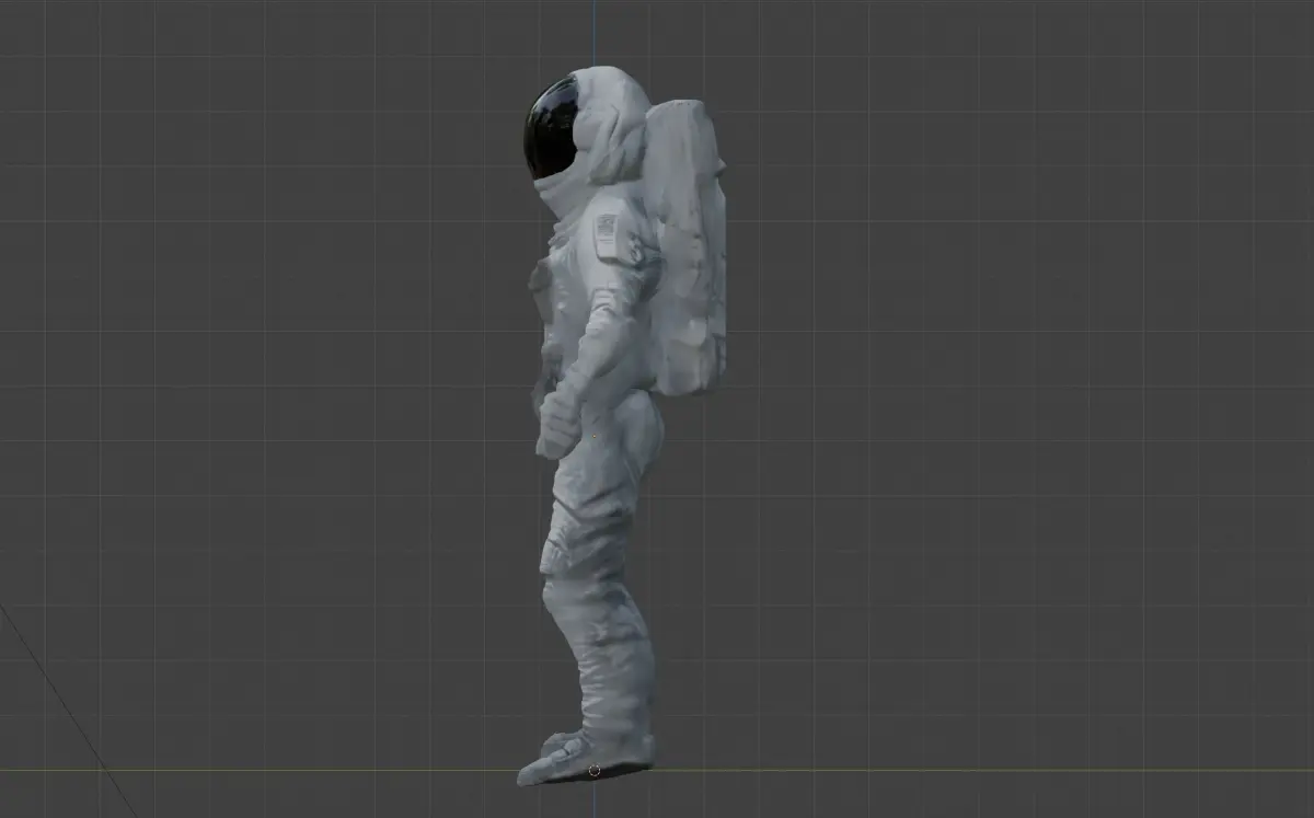Astronaut raw sculpt, i.e. not retopologized. Uses vertex colors. Face shield glass is a separate material for lower roughness and better specular reflection. 477k verts / 955k faces.