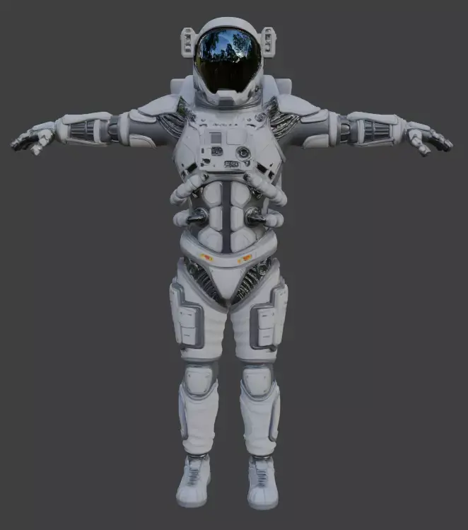 100% quad-based polygon meshNon-overlapping UVsFull PBR texture set (Base Color, Normal, Roughness, Metallic, Height, AO)Realistic details on helmet, backpack (PLSS), gloves, boots, and hosesGame-ready and optimized