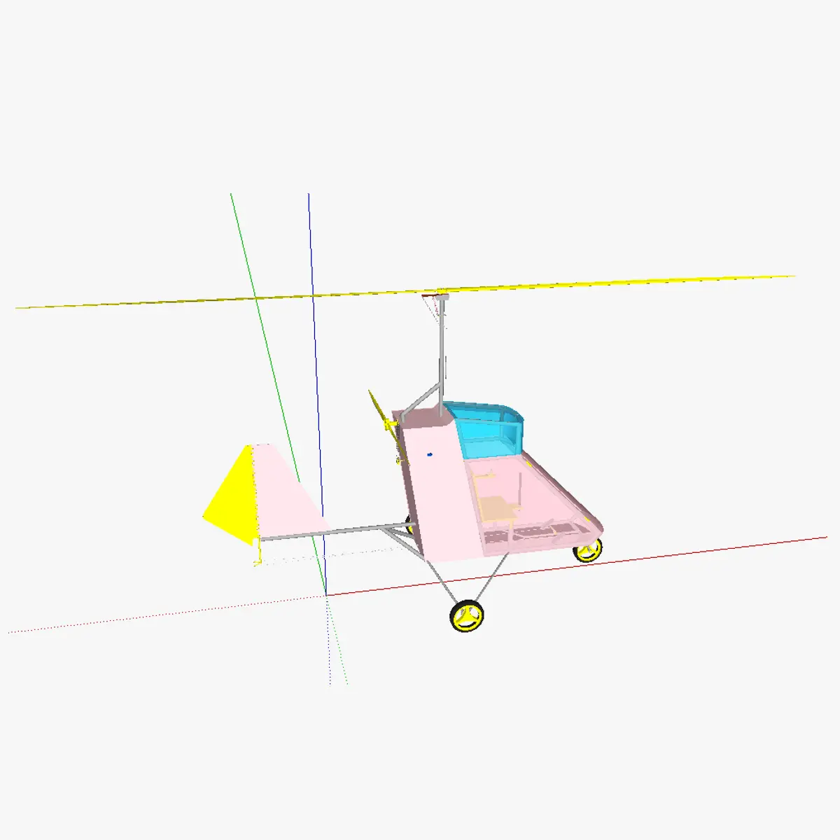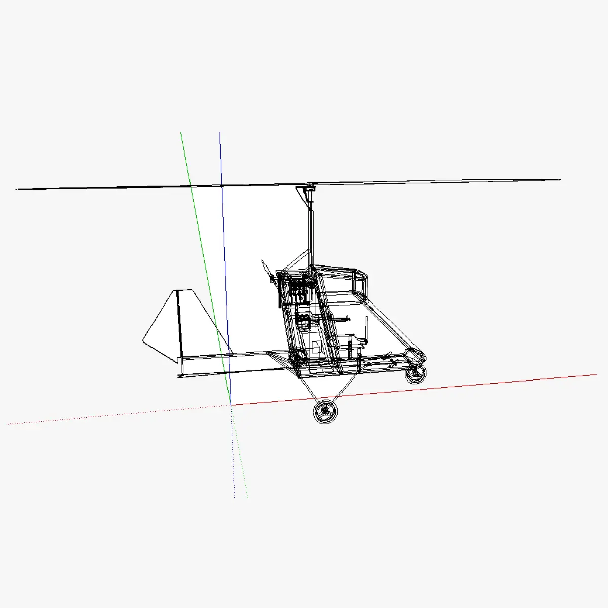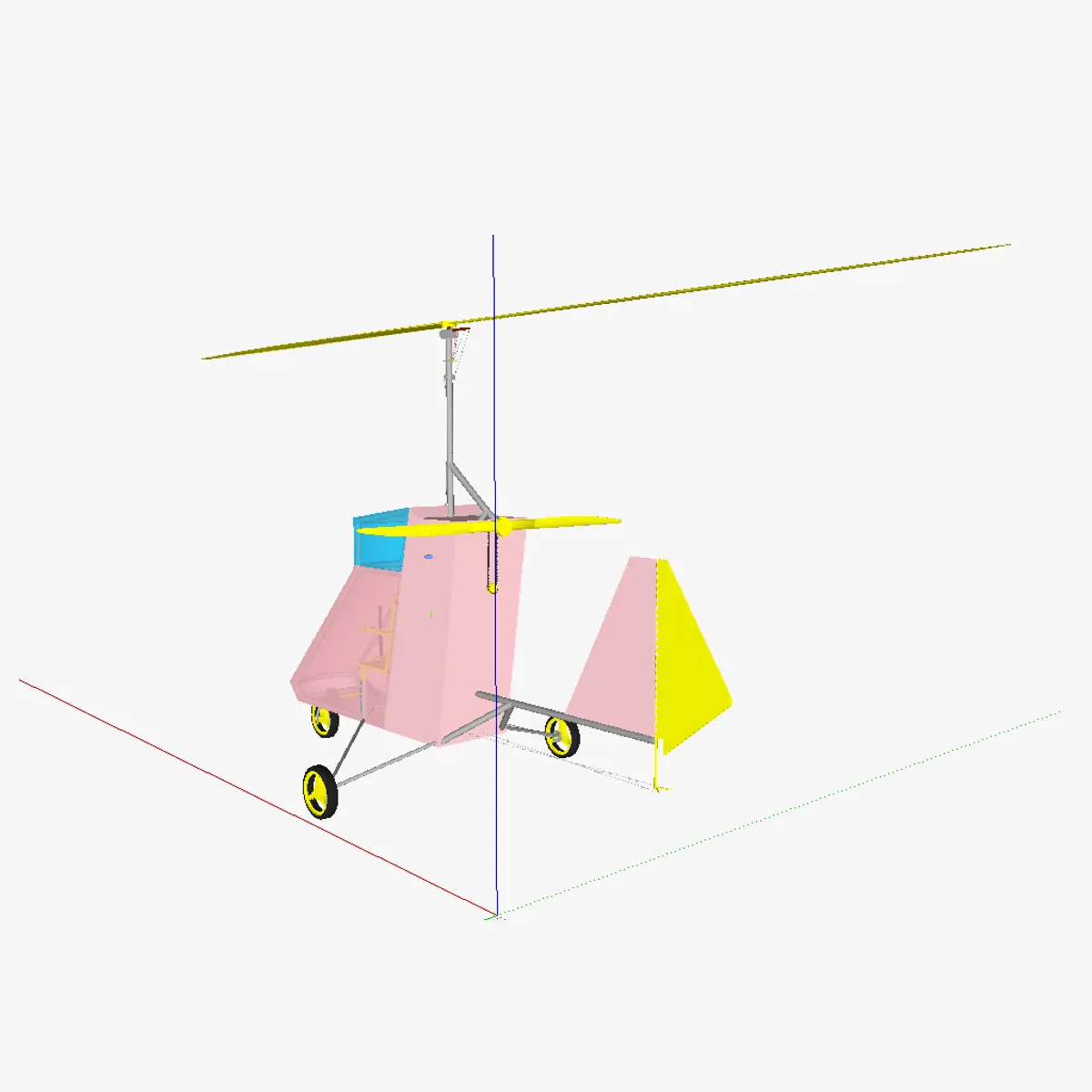 3D model of the AT autogyro. See the 'Purchasing_the_models' link at appropedia's AT_CAD_Team for additional information on the model. Note that the frame design has been changed slightly since making the original drawing.