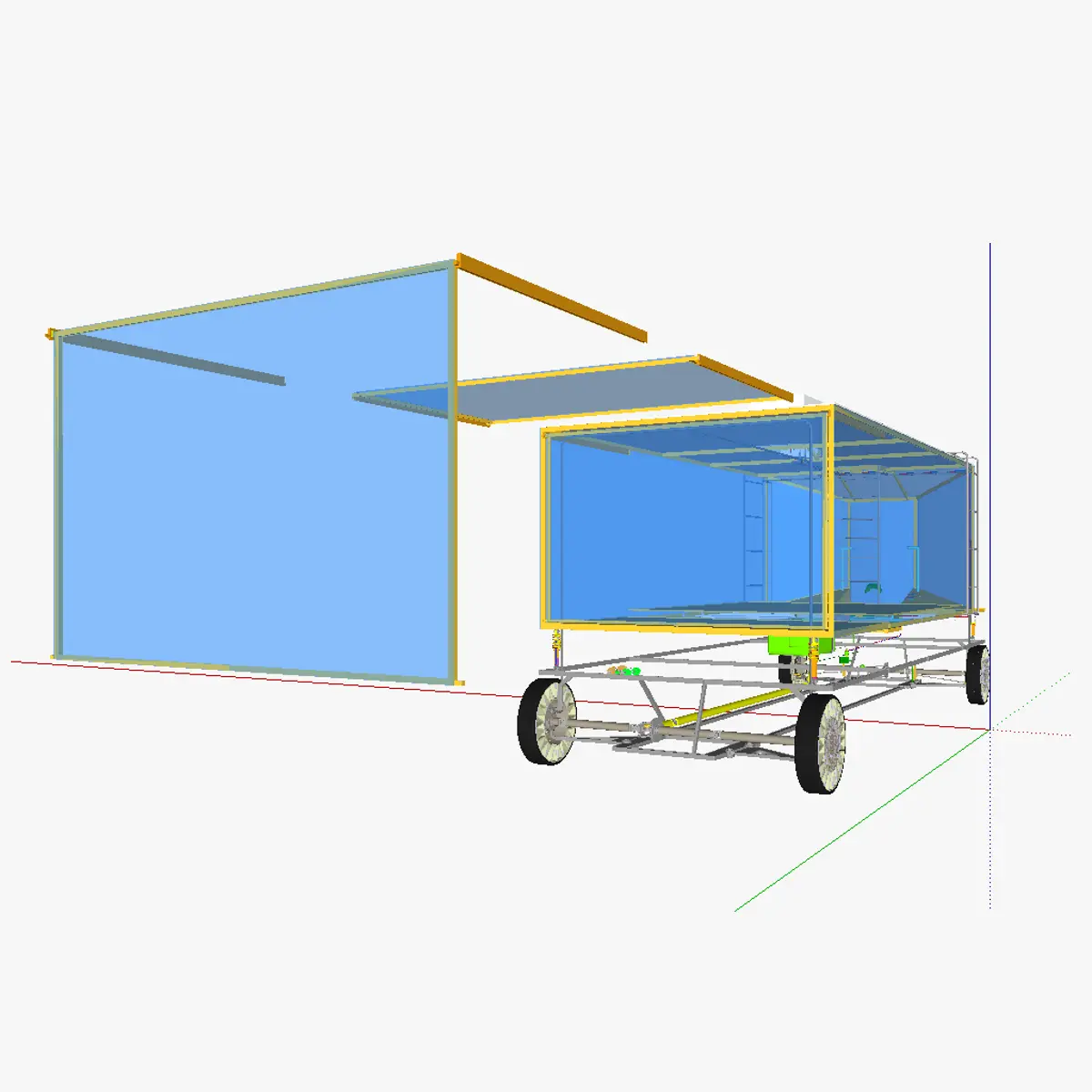 3D model of the AT minivan (compressed air motor version). The AT minivan is a lightweight vehicle due to the absence of doors, seats, (heavy) conventional frame and coachwork. It is also very aerodynamic (given its size) due to the sloped front side, and the sloping of the shell at the front.