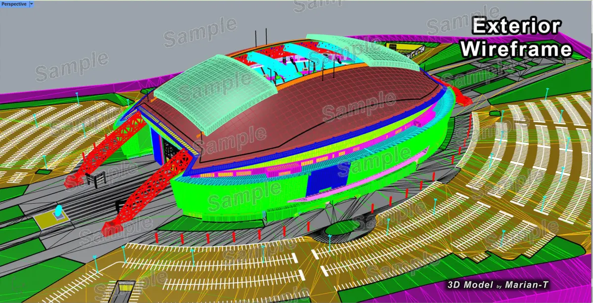 The stadium 3d model is provided full assembled in ,,3DM'' file format with high quality realistic textures included. All main parts are organized with proper layers, the materials of objects are easy to be modified or removed and standard parts are easy to be replaced.
