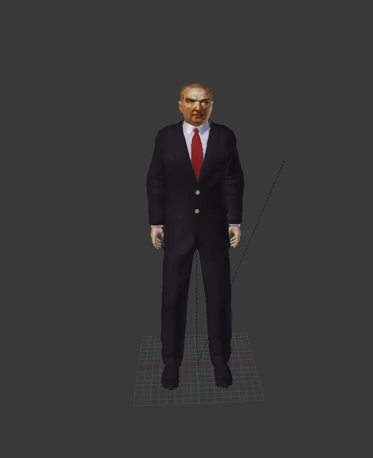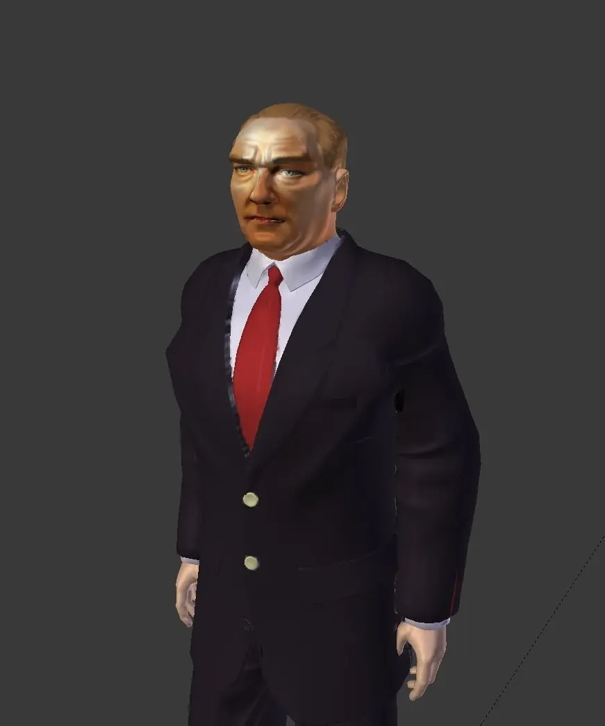 in this model, the 3D modeling of Turkey's founder, great leader Atatürk was made. Suitable for use in 3D printer. The model includes materials and rigging. You can animate yourself using these rigs.