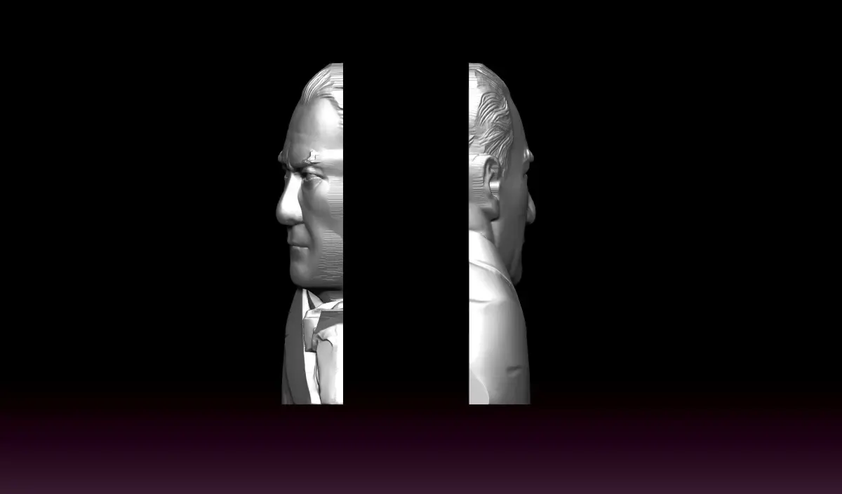 This relief model is a faithful digital representation of Mustafa Kemal Atatürk, founder of the Republic of Turkey. Designed with attention to anatomical accuracy and historical character, it features a powerful facial expression, realistic suit folds, and refined hair details—ideal for resin printing, cultural projects, or academic visualizations. Produced in ZBrush. This digital high relief is intended as a respectful cultural and artistic tribute. Please ensure compliance with local laws when using depictions of public figures. The file format is suitable for 3d printing. The user may need to prepare the file for 3d printing and have basic printing knowledge.