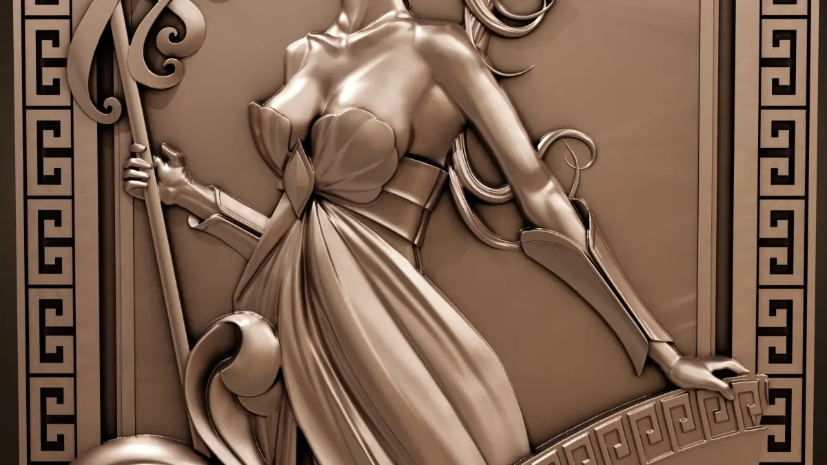 This is a model of the goddess Athena. The model is intended for 3D printing or milling. It's a large panel.