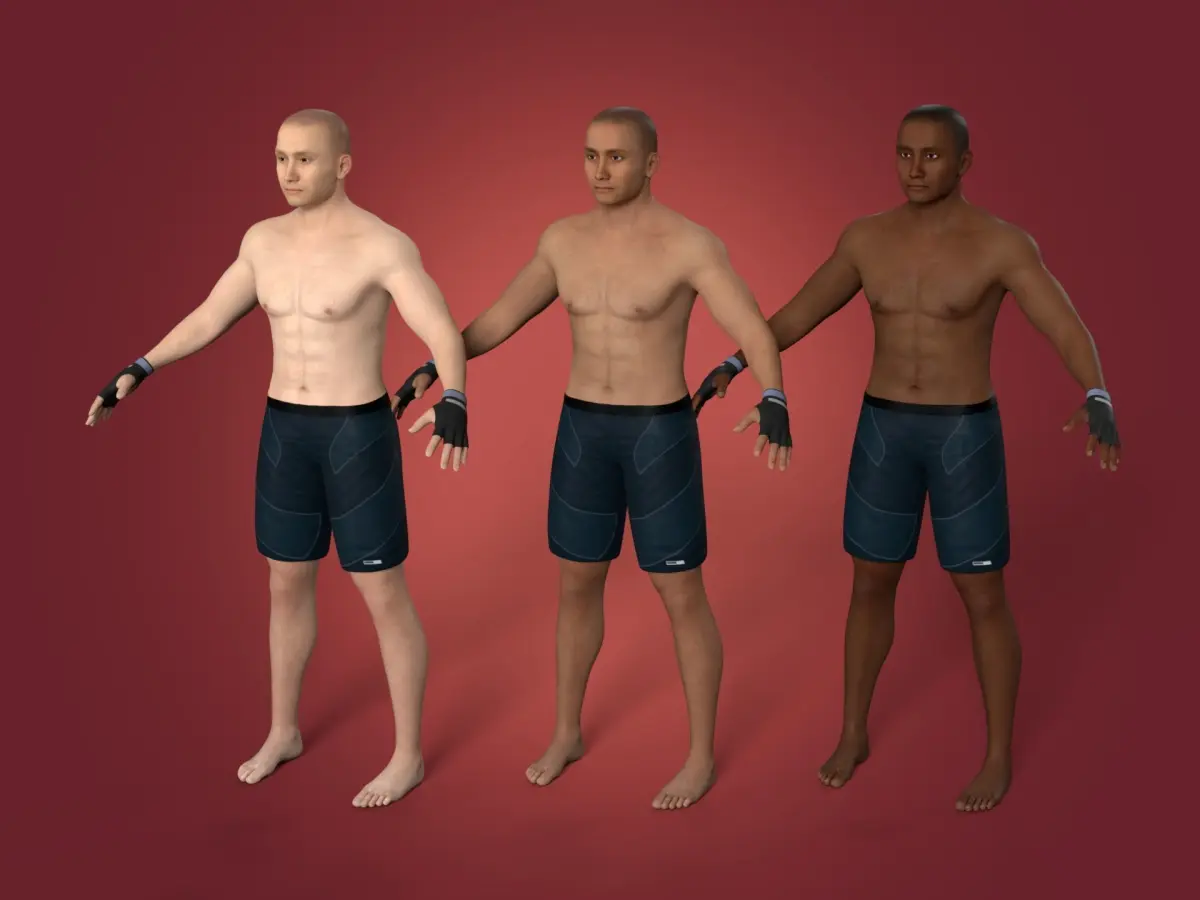There are 6 skin textures with 4096 x 4096 resolution (3 skin colors with 2 versions each: with and without an ankle brace)