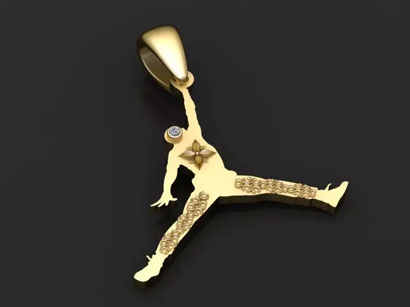 These pendants feature a stylized athlete silhouette design, available in both gold and silver finishes. The figure is detailed with floral engravings along the body, a central flower motif on the chest, and a sparkling diamond accent at the head, blending modern sporty aesthetics with elegant jewelry artistry.