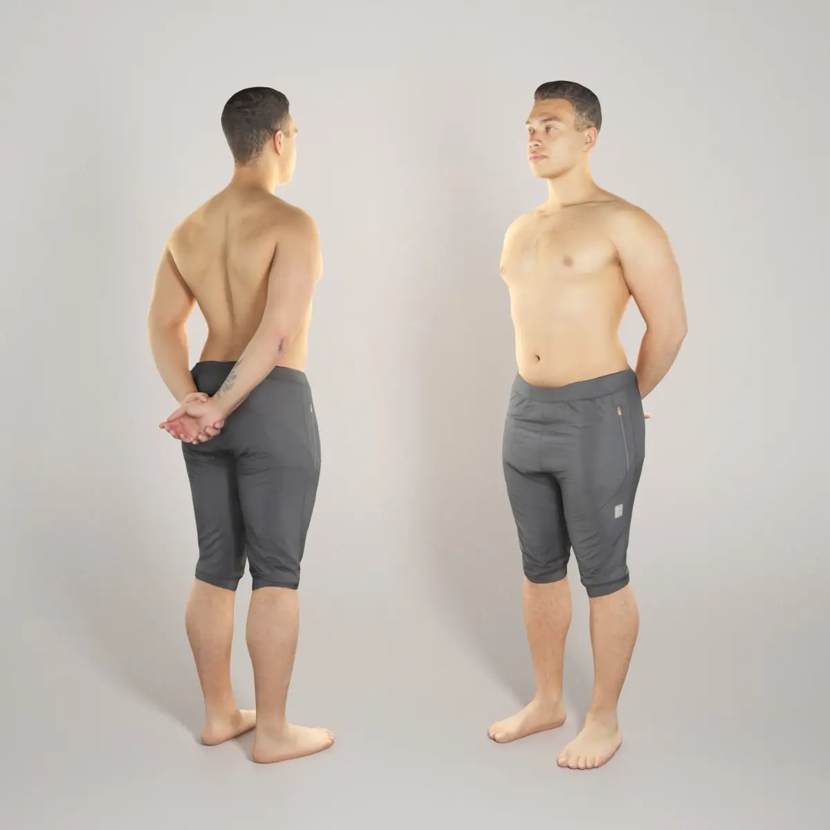 This is a true human size and detailed model of a sporty handsome young man of Caucasian appearance. The model is captured in casual pose to be perfectly matching for variety of architectural visualizations, e.g. gym, park, locker room, weight room, beach, VR/AR content, etc.