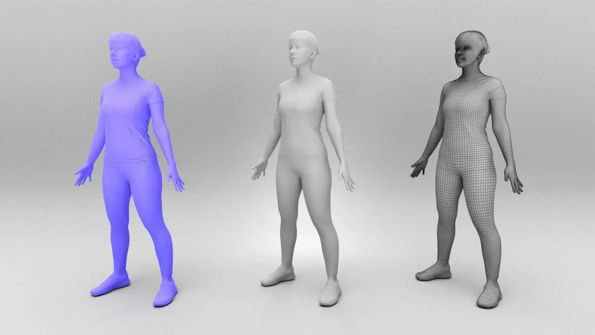 This is a true human size detailed model a beautiful young woman of Caucasian appearance dressed in sportswear. The model is captured in the A-pose with mesh ready for rigging and animation in all most usable 3d software.