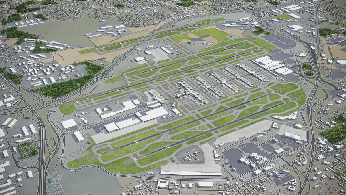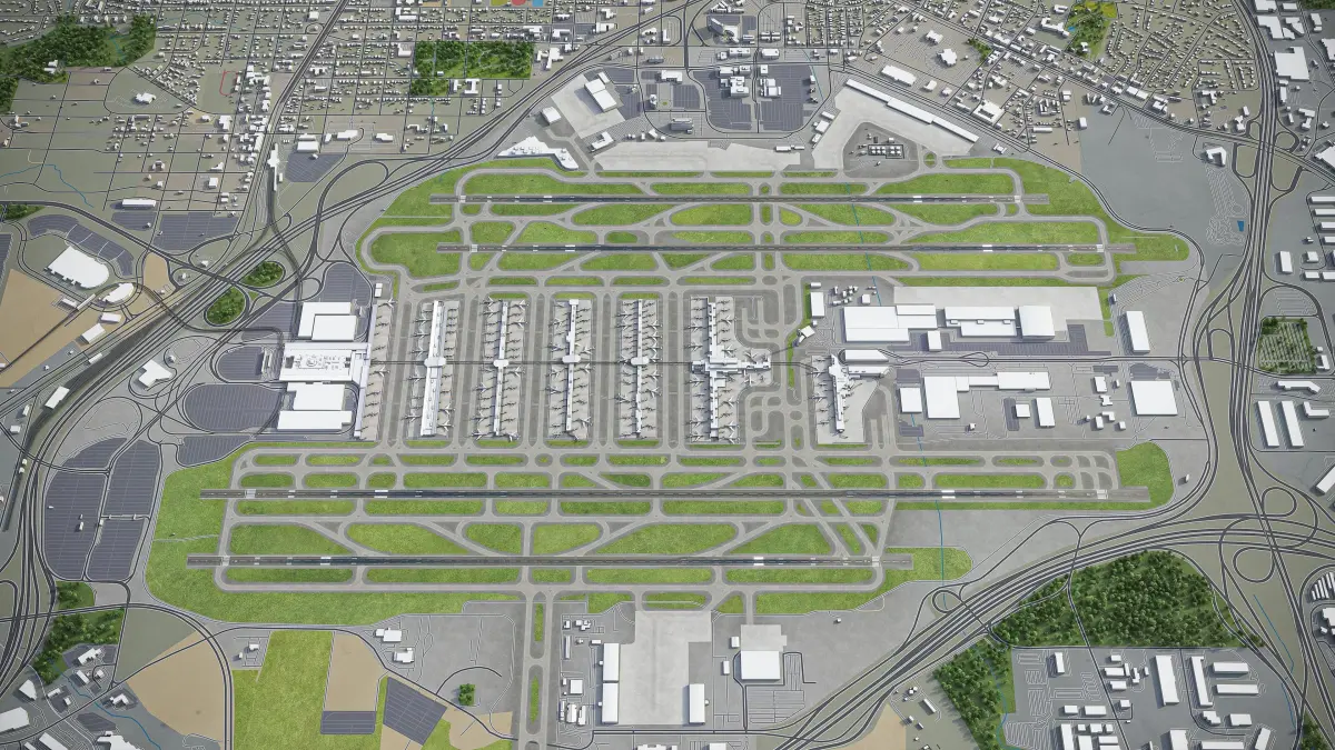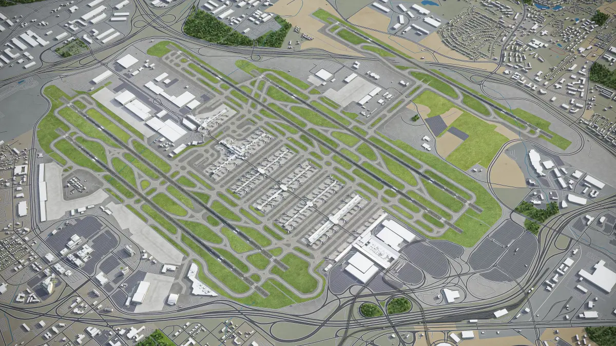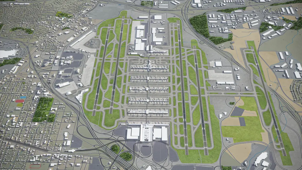 This is exact and accurate to scale 3D city model of Atlanta International Airport (ATL) and its surrounding area based on GIS data (May 2020)
