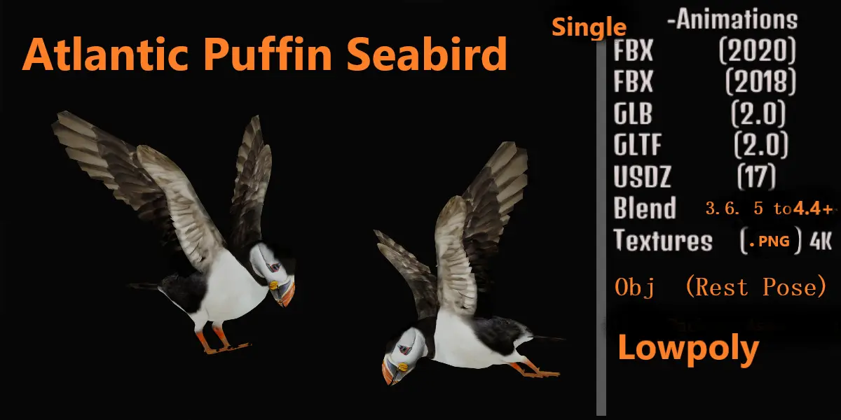 The Atlantic puffin, also known as the common puffin, is a species of seabird in the auk family. It is the only puffin native to the Atlantic Ocean; two related species, the tufted puffin and the horned puffin being found in the northeastern Pacific...3D Atlantic puffin Animal Model By Nyilonelycompany (nyc).