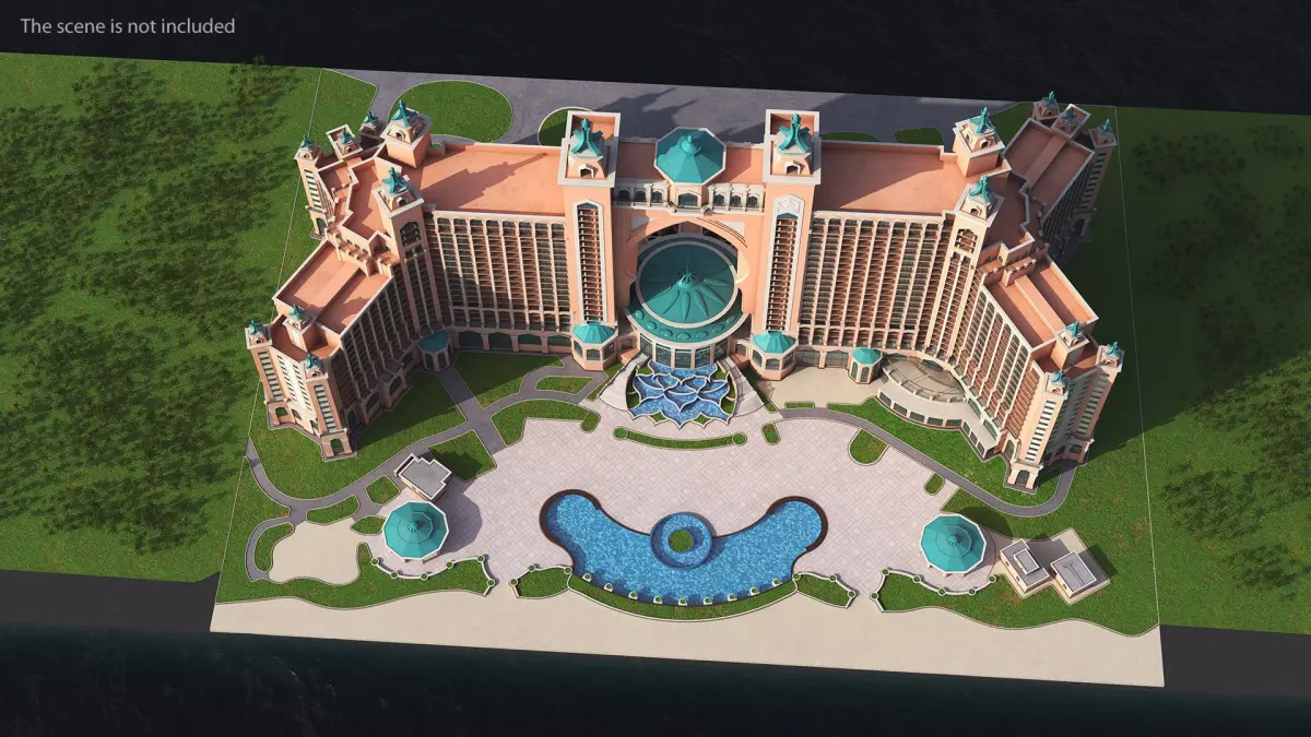 Atlantis Palm Dubai Luxury Hotel is a high quality, photo real 3d model that will enhance detail and realism to any of your rendering projects. The model has a fully textured, detailed design that allows for close-up renders, and was originally modeled in 3ds Max 2014 and rendered with V-Ray. Renders have no postprocessing!