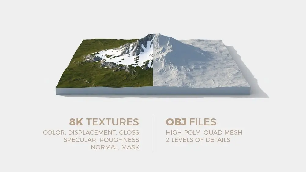 Unique* hero mountain in 3 variations. Realistic erosion and snow for best possible results.
