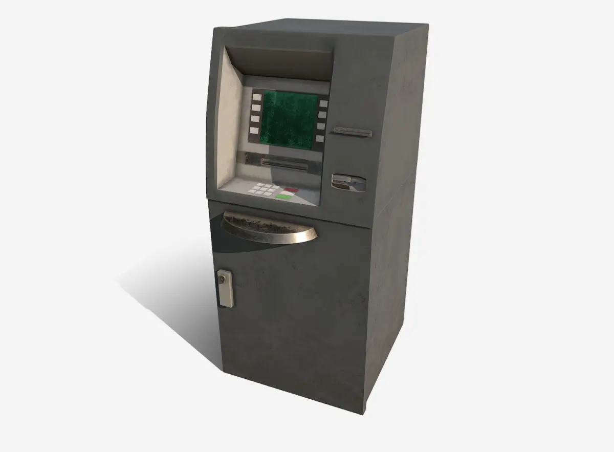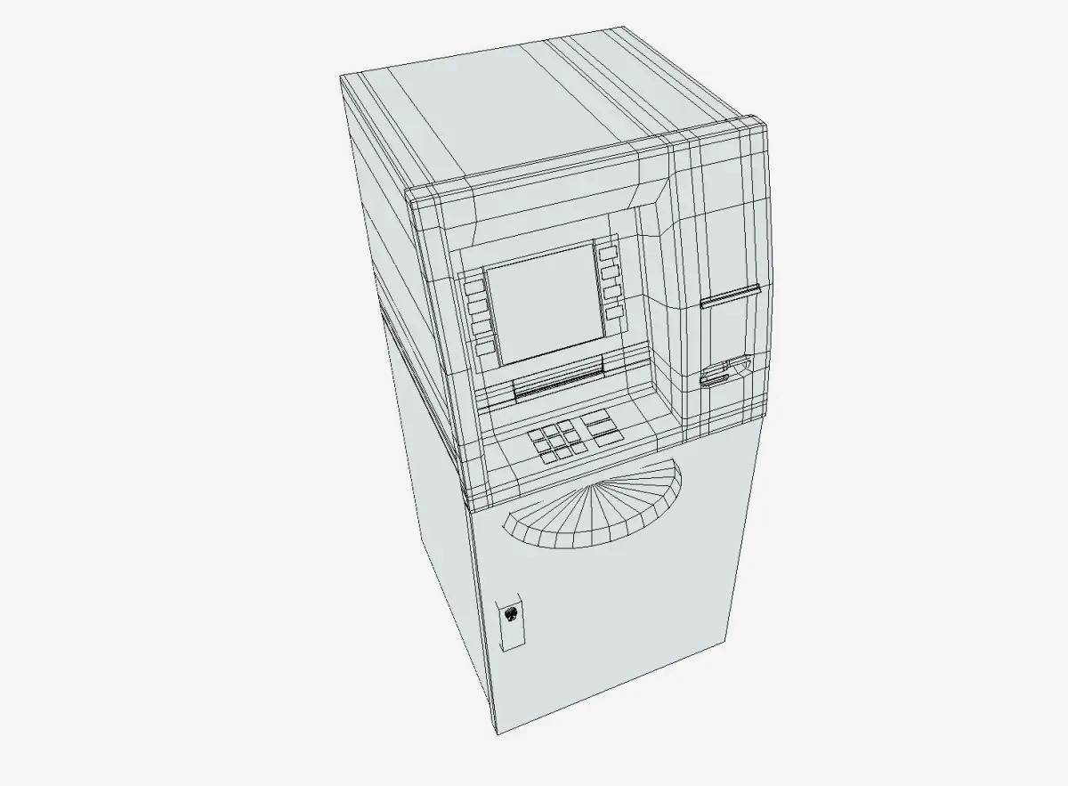 Model: ATM Media Type: 3D Model Geometry: Quads/Tris Polygon Count: 1292 Vertice Count: 1403 Textures: Yes Materials: Yes Rigged: No Animated: No UV Mapped: Yes Unwrapped UV's: Yes Non Overlapping