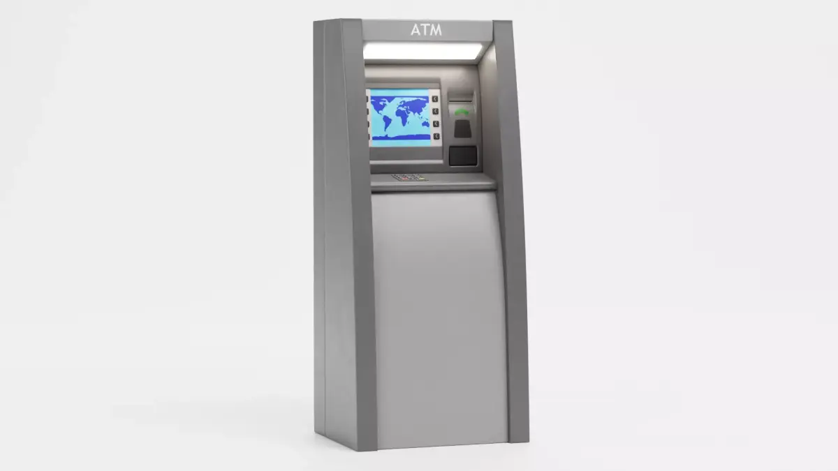 - Freestanding ATM terminal with full front-side detail