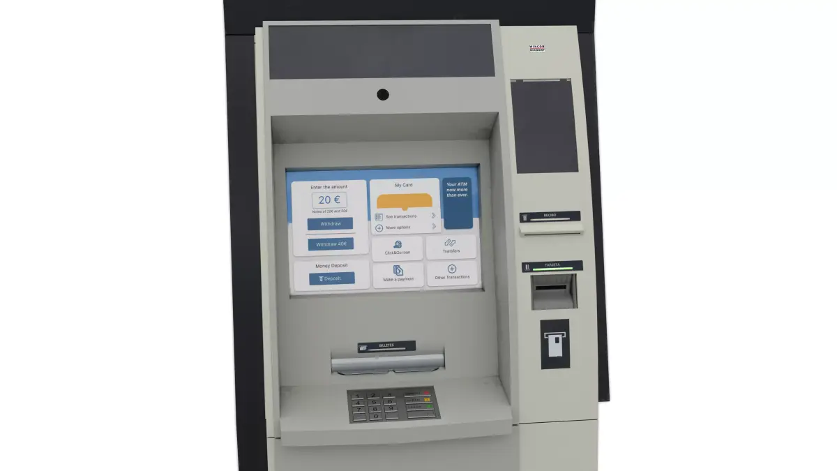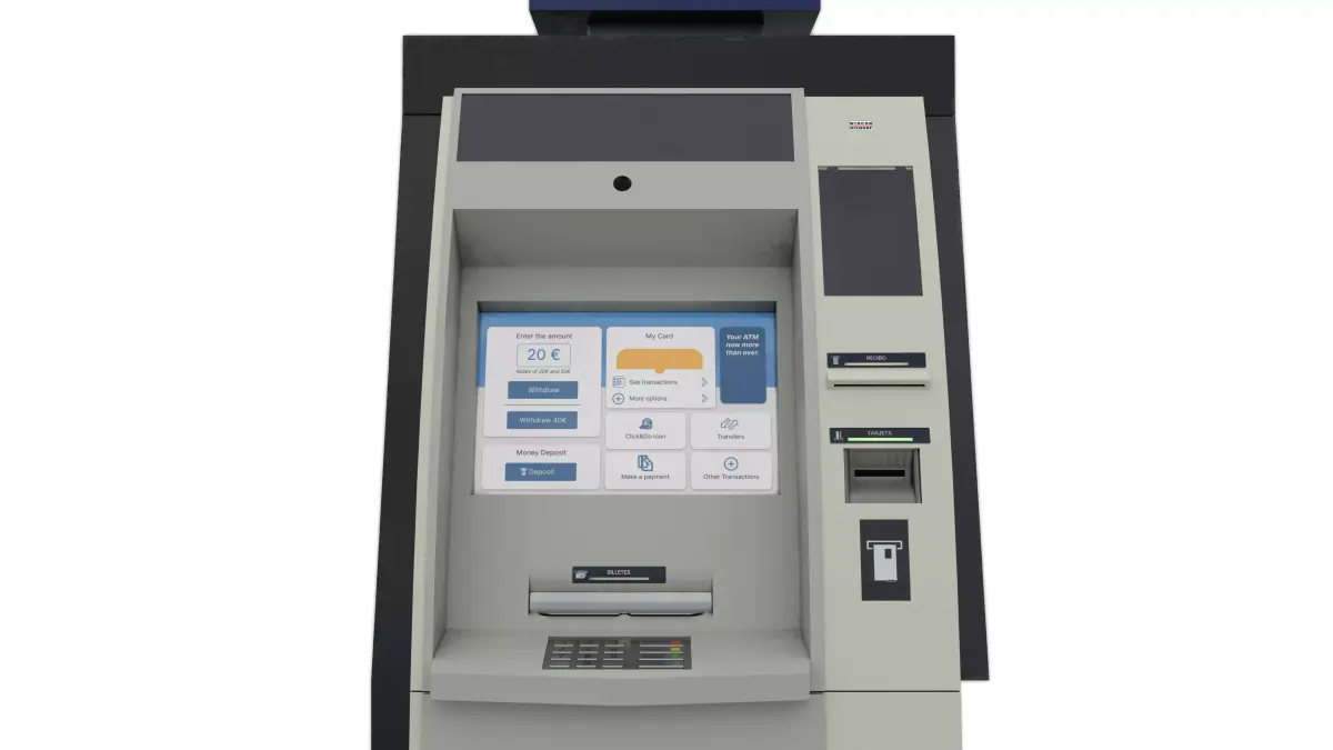 High-detail 3D model of a Wincor Nixdorf Cineo ATM with a CaixaBank enclosure, modeled from reference photos taken in Spain.The Blender native file is included, allowing you to easily drag and drop the asset into your scene.