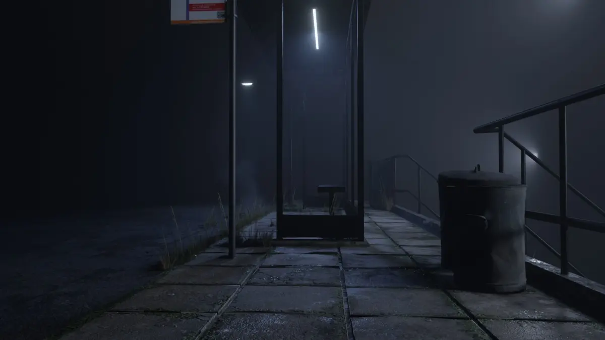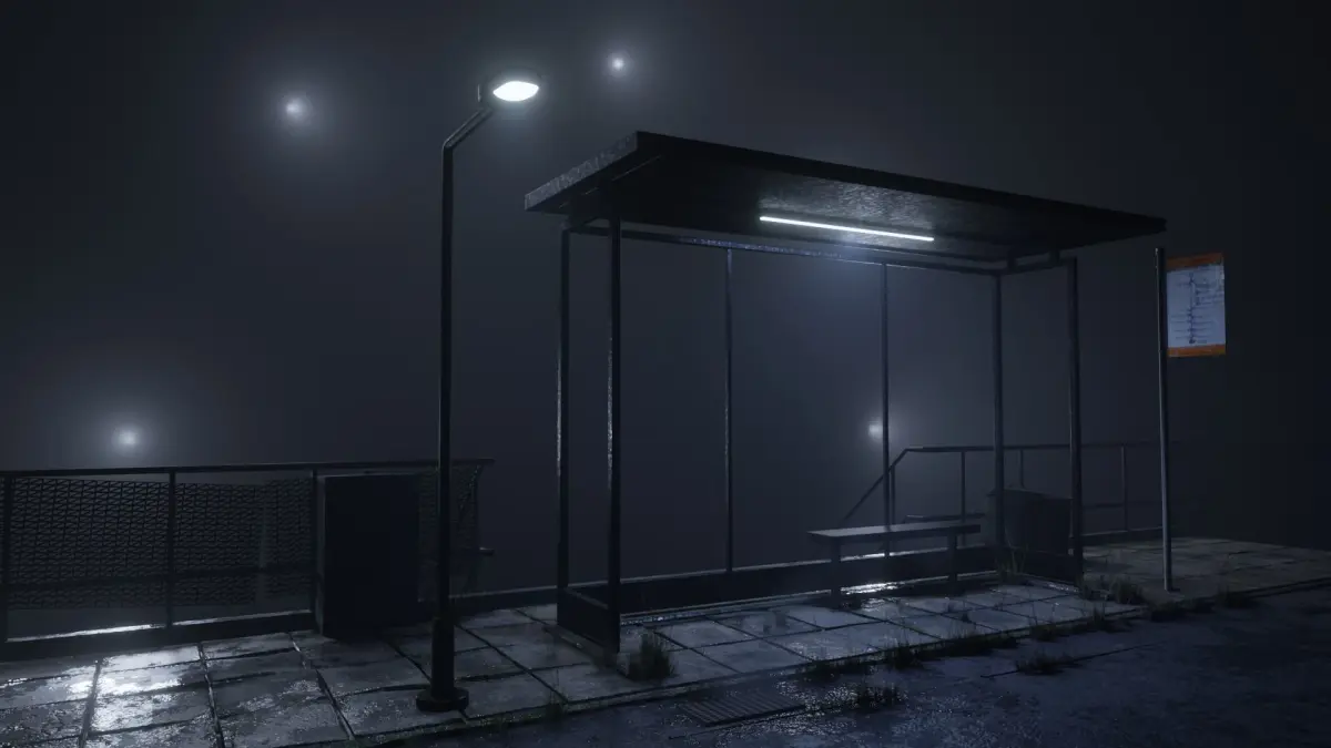 This is an animated atmospheric bus stop scene Environment this is complete with different lightings and assets.