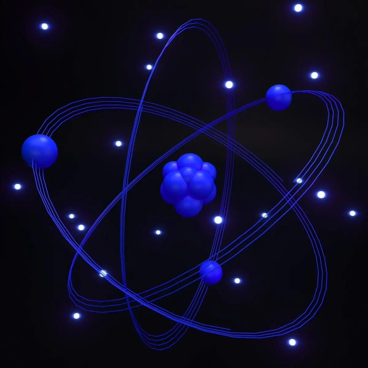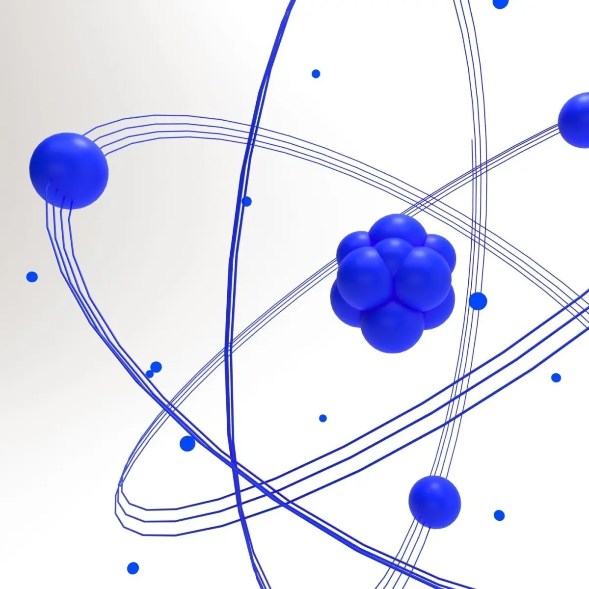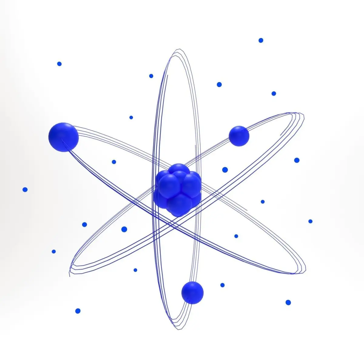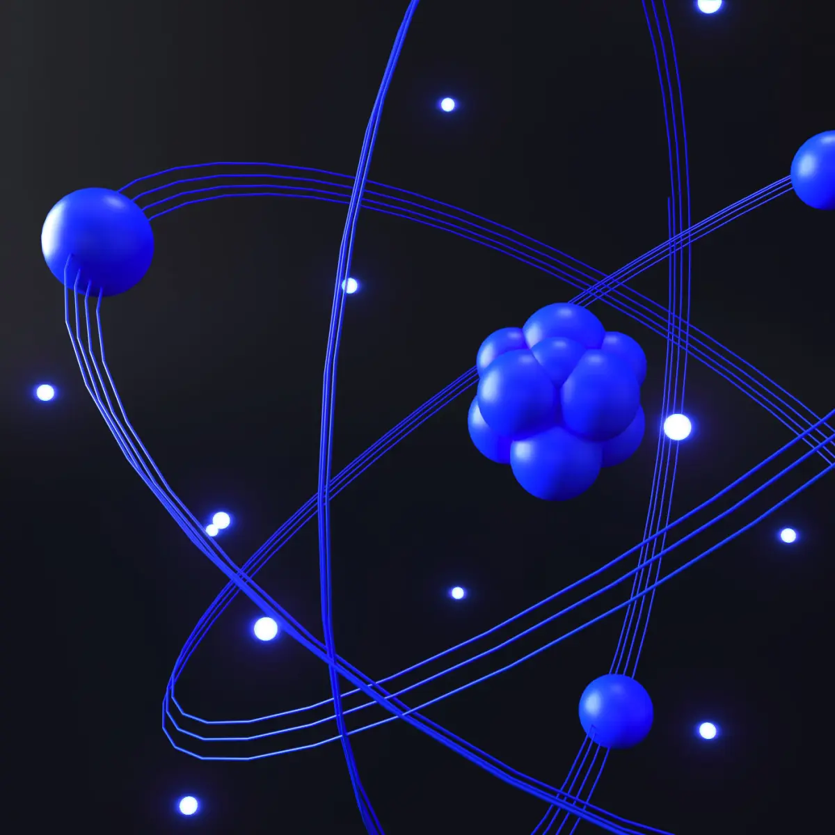 3d model of an atom in abstract design, created in 3ds max 2020 versionThe material of the model is a regular color with a customized matte reflection and glowing electrons around