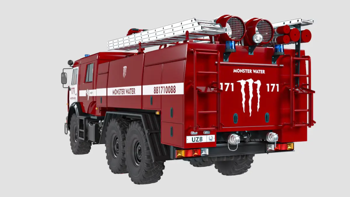 The 3D model was created on real fire truck red base. It’s created accurately, in real units of measurement, qualitatively and maximally close to the original.
