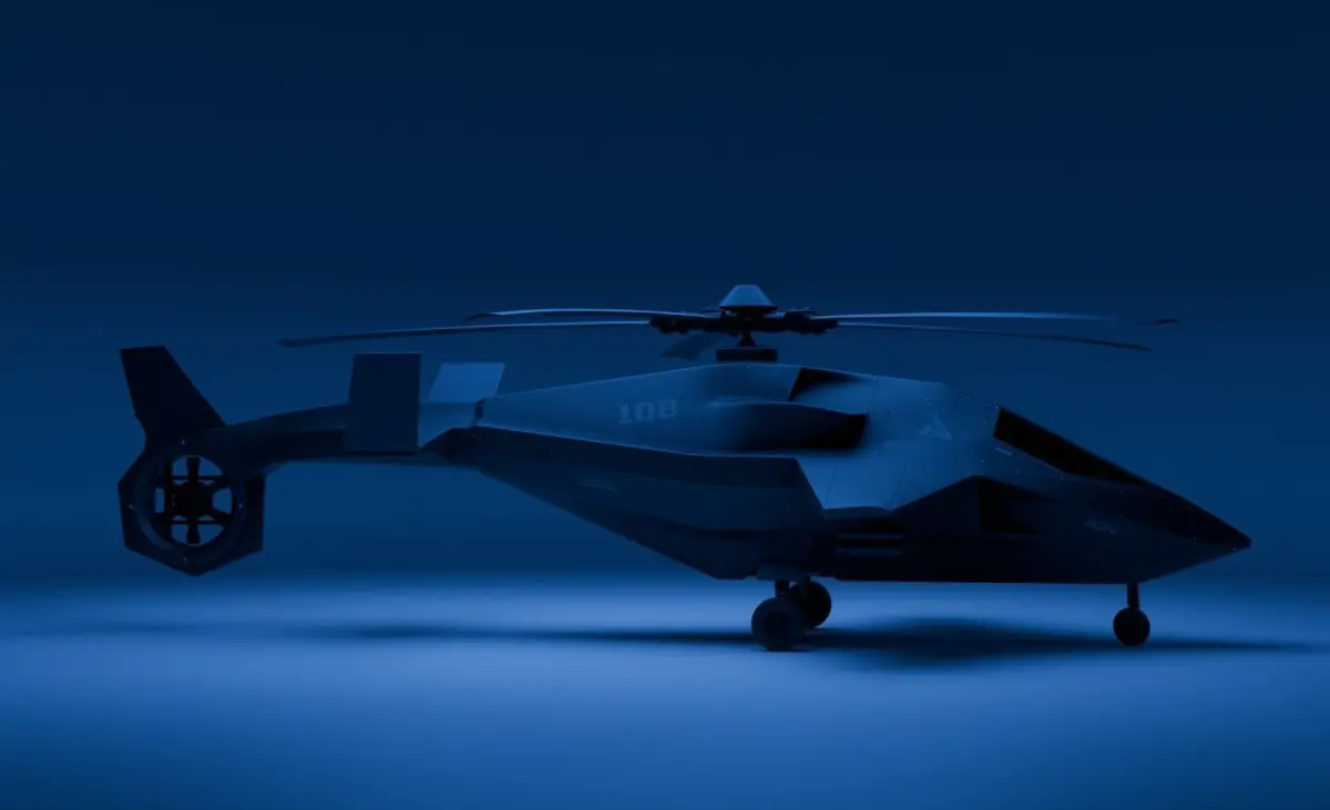 A sleek and aggressive 3D model of a futuristic attack helicopter, featuring stealth-inspired geometry, dual rocket pods, angular armor plating, and a streamlined rotor assembly. Perfect for sci-fi environments, modern military simulations, or action-packed cinematic shots. Designed for high-impact visuals and optimized for both real-time and offline rendering.