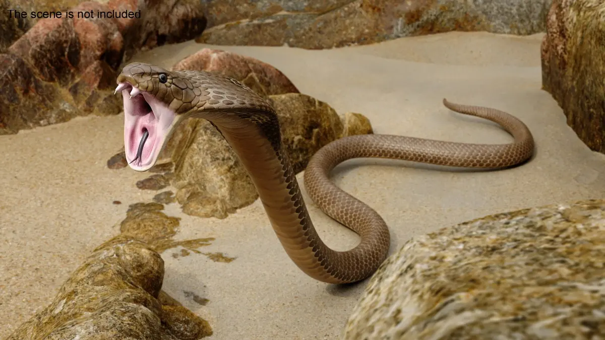 Attack Naja Cobra Animated Rigged for Cinema 4D is a three-dimensional model of Naja Cobra Snake (Naja naja), that is a venomous snake species known for its iconic hood display and potent neurotoxic venom.