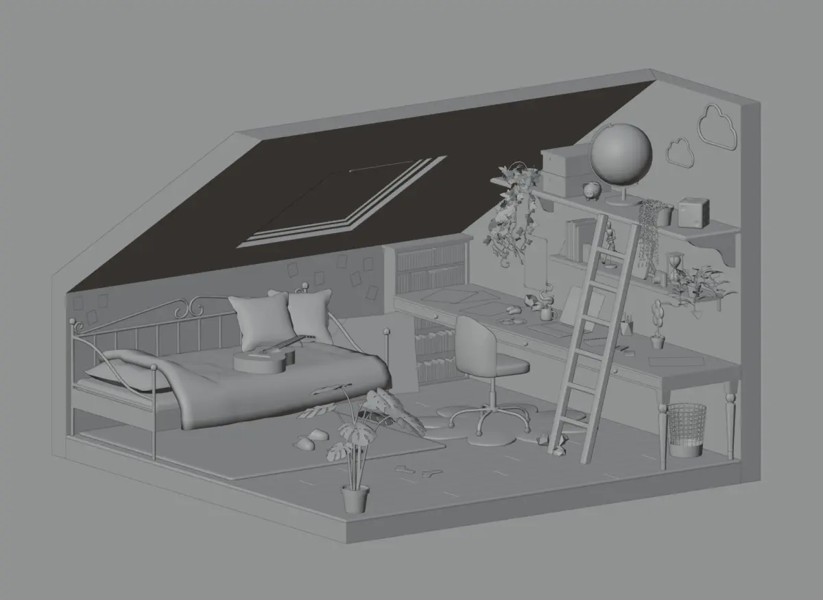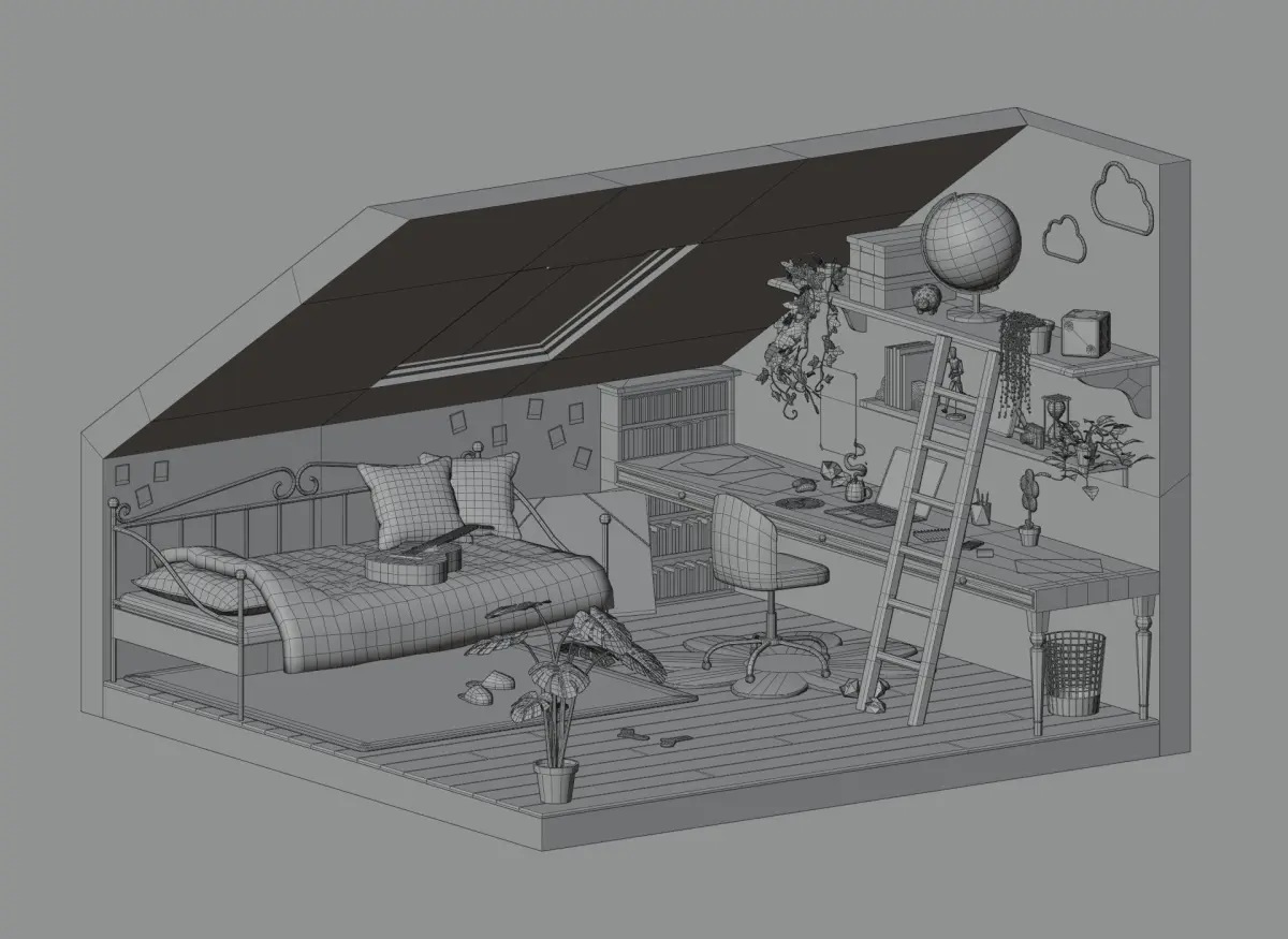 I am pleased to present this attic bedroom that will blend into any decor of this style ! You can integrate these 3d model into all your games or animations and create a unique decor of which only you have the secret ! This pack contains: