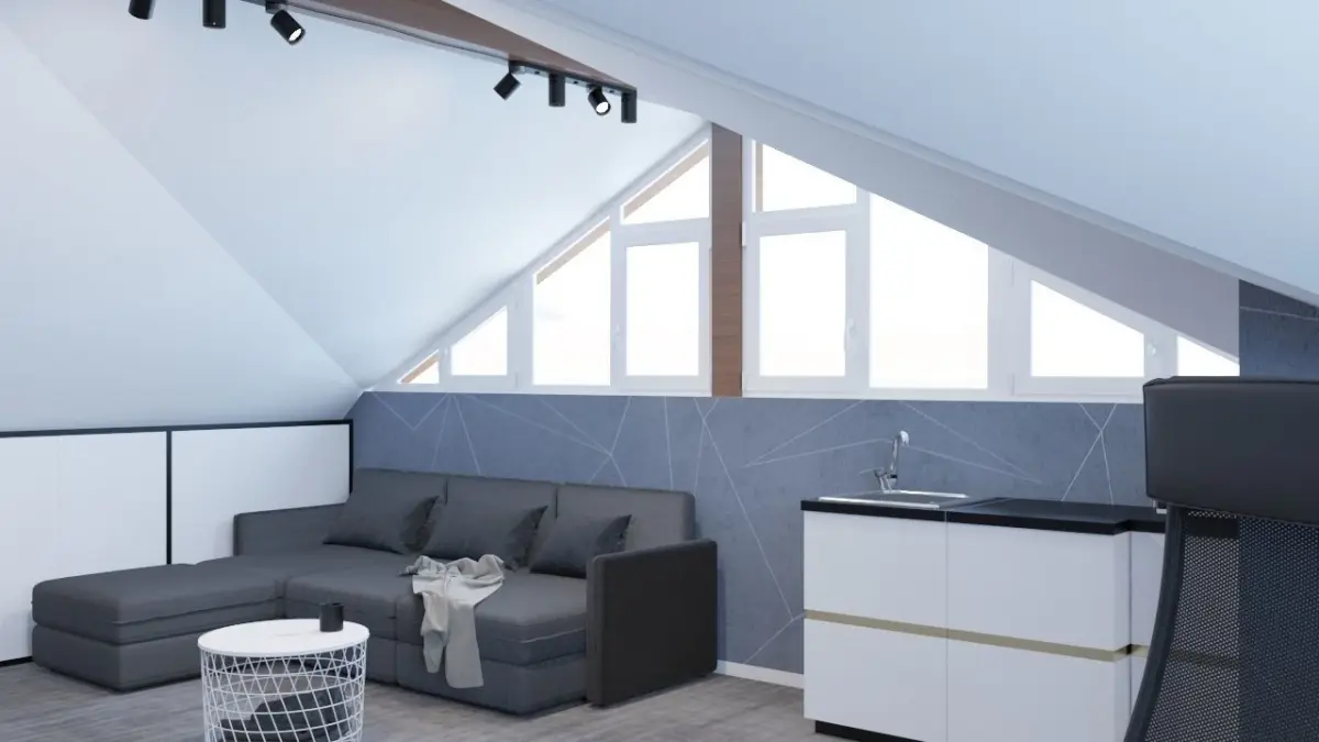 Interoir of a small attic with a living room and a bedroom.All the furniture in the scene is from Units: MillimetersTable polygons: 5247098Chair polygons: 2910735Textures: YesMaterials: YesRender: V-rayFormats: 3ds MAX 2015, FBX, OBJ