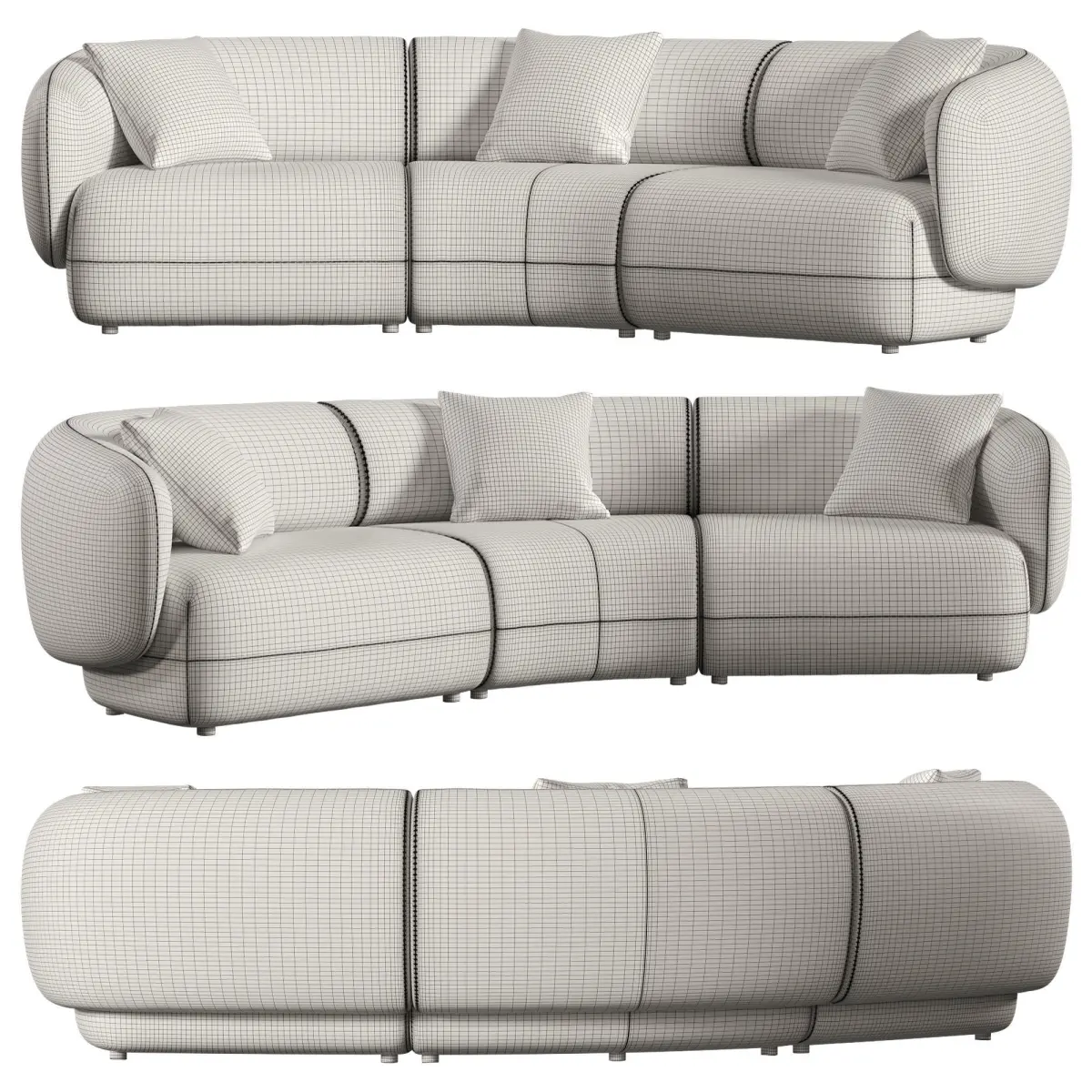 With tightback armrests and a gently-curved silhouette, Auburn is a modular piece that delivers a luxurious lounge experience.High detailed 3D modelAll geometry is ready for subdivisionUVW MappedPolys: 108620Verts: 111871Dimensions: 310 x 180 x 80cmhttps://www.castlery.com/sg/products/auburn-performance-boucle-curve-3-seater-sofa?material=performance_basalt