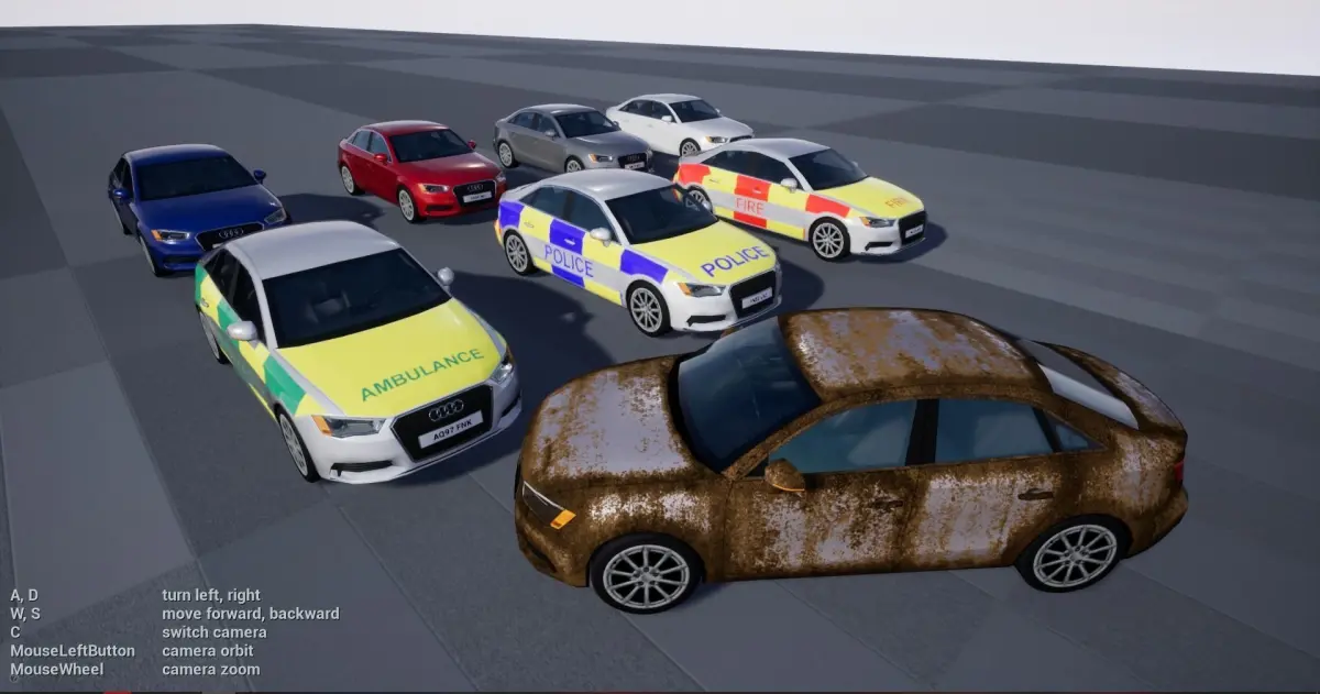 - game ready drivable car with improved handling of standard UE4 wheeled vehicle