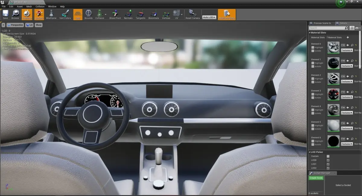 Low-medium poly Audi A3 3D model with simplified interior ready for rendering with vray or scanline renderer. Vray and scanline materials, textures. Included Unreal engine 4 project with game ready drivable car and static mesh model with 4 LODs. Vray, max scanline, fbx, UE4 formats. Main Unreal Engine 4 project features: