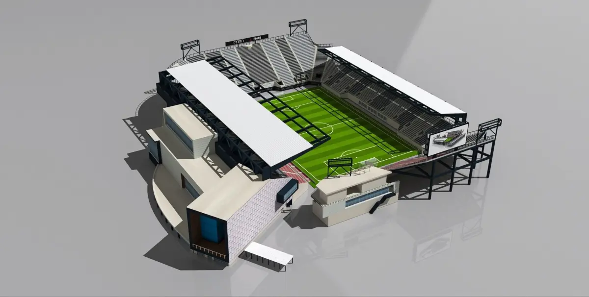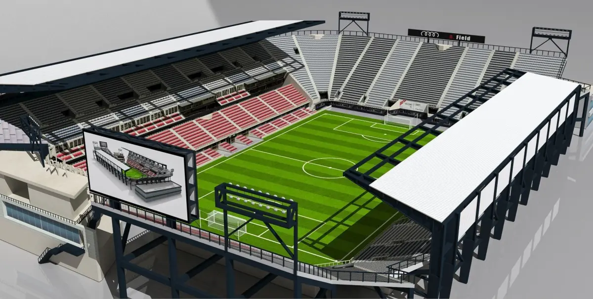 The 3D model is based on photos references of real world Audi Field stadium , both, interior and exterior. It was created with approximate dimensions.