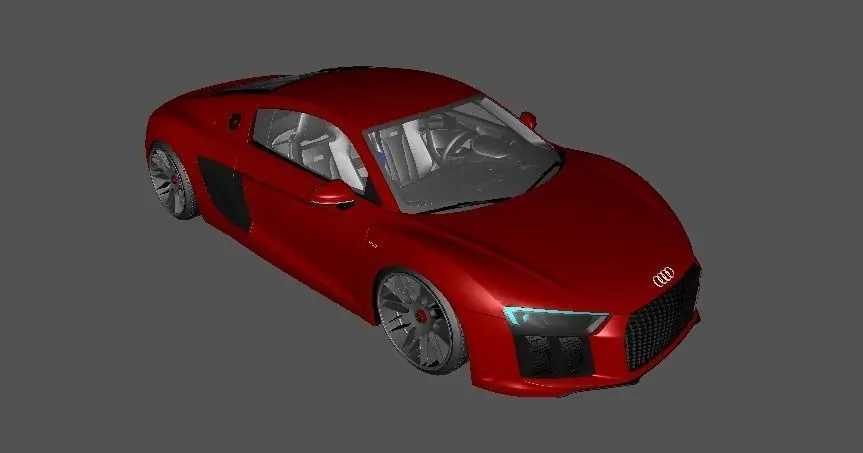 Esse Audi R8 Esta Completamente Todo 3D Esta com Design Sofisticado Bem detalhada desde farol a lanterna Peças 3D Esta com Rodas da Stock Car Veiculo Esta em Suspensão meia AlturaTa ne Polys Razoavel Da Certo em Jogo