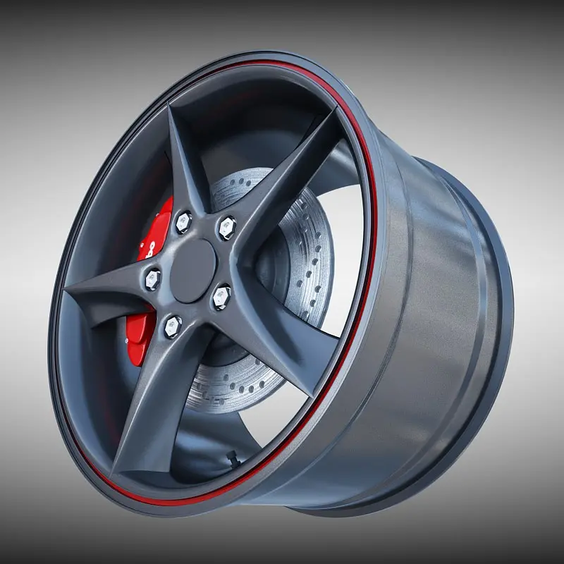 * 3D Model of Audi R8 Spyder Wheel with Tire, Brake Disk and Caliper - With Textures and Materials - Ready To Render in Your Scene