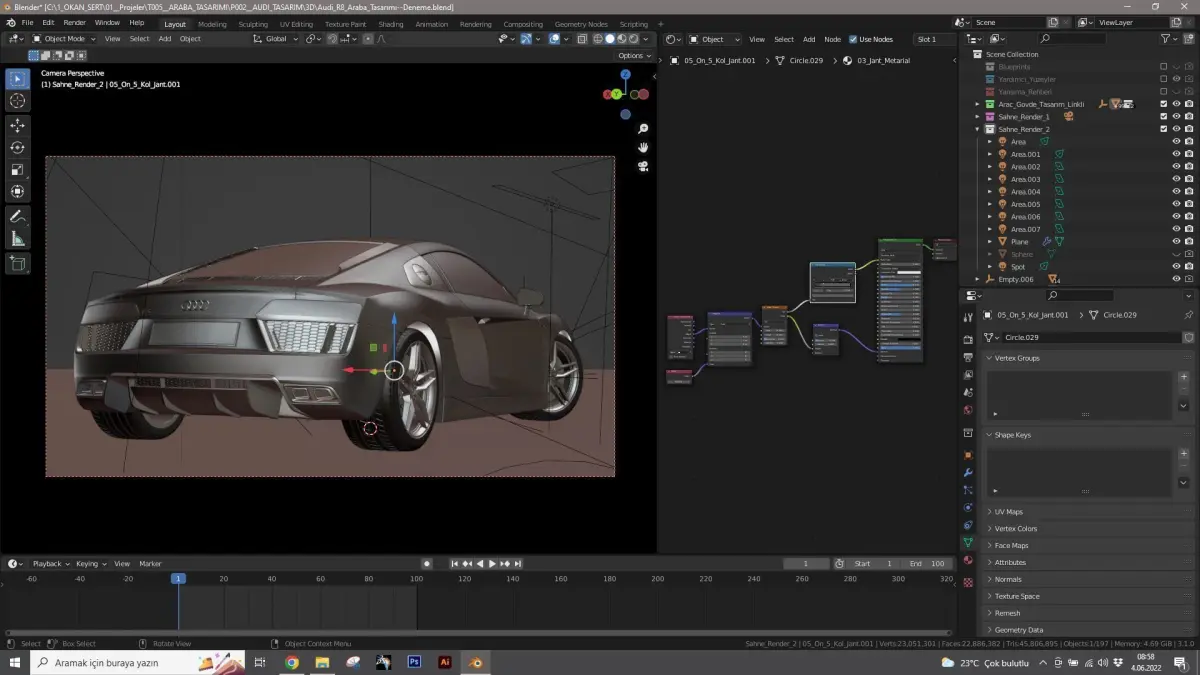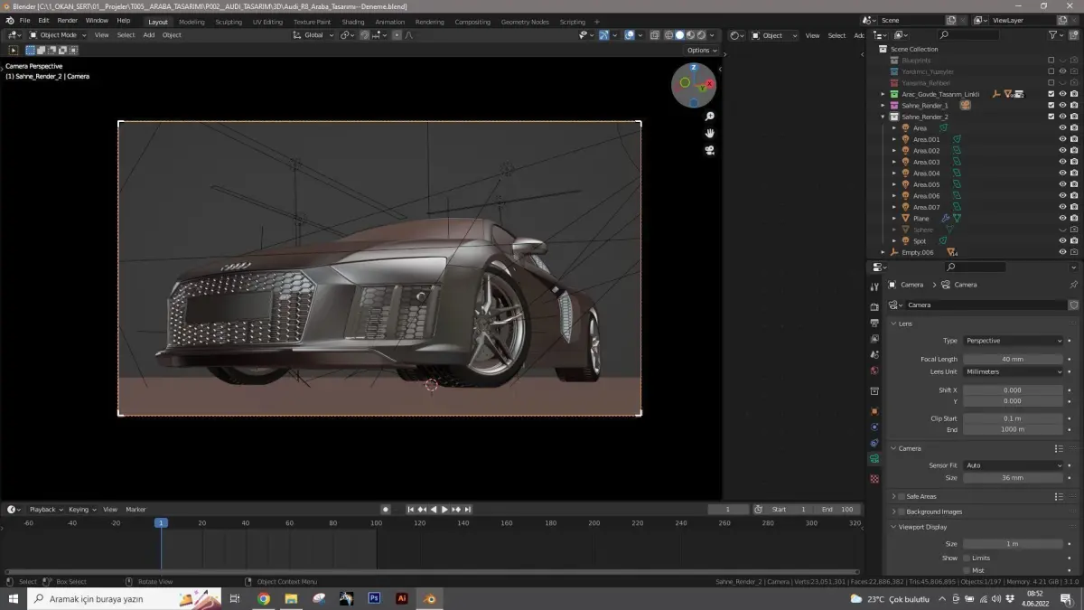 Audi R8 V10 car exterior design and rendering, which I designed and rendered in blender in about ten days. In addition, you can find the fast-shot video of this work, which I created an animation to be short, on my youtube channel.