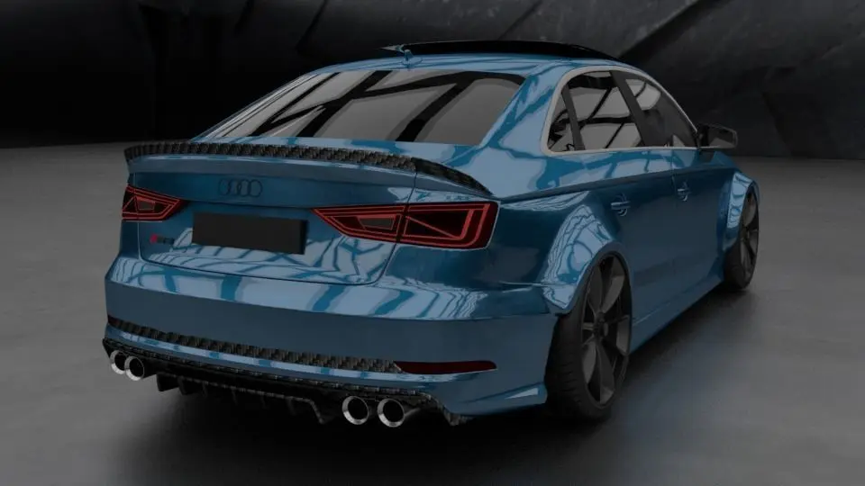 This 3D model of an Audi RS3 wide-body, customized by Kaiser Design is of high quality and the materials and textures reflect that realistic quality. The car is equipped with Porsche GT3 wheels. The Models come with the light room seen on the pictures.