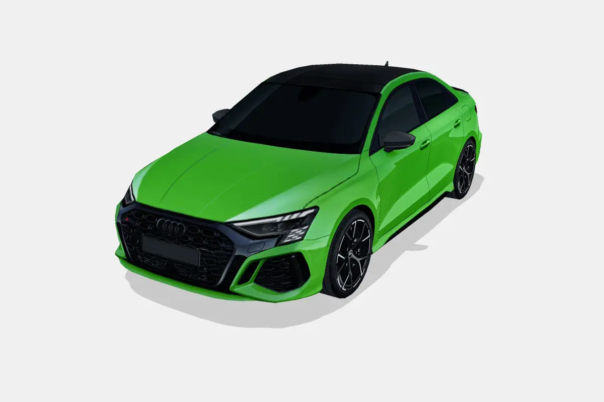 3d model of the 2022 Audi RS3 sedan, or Limousine, a sporty subcompact executive, or compact 4 door sedan car.
