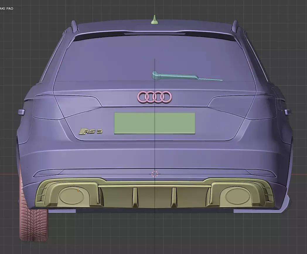 Separated Parts:• Rear disc — separate• Brake pad — separate• Rear diffuser — separate• Car body — separate• Rim + Tyre (joined as one piece)
