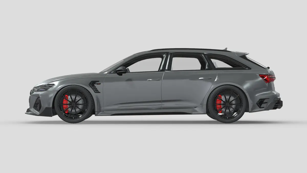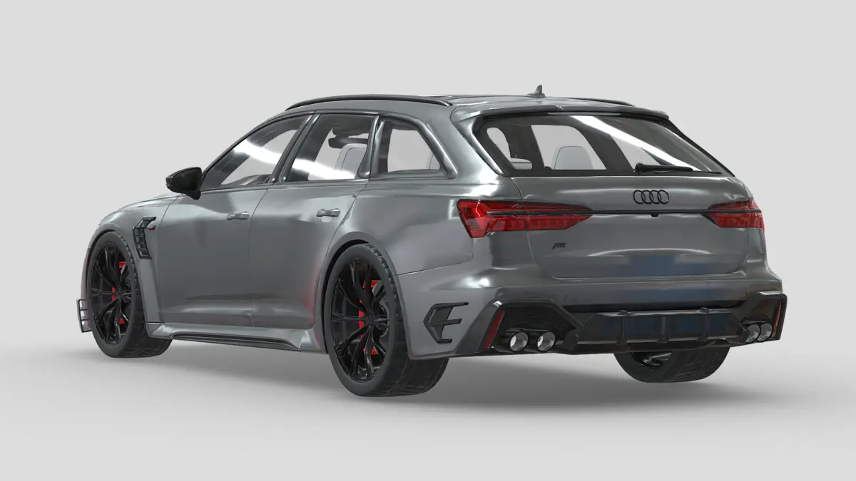 This is a detailed 3D model of the Audi RS6 ABT, featuring the aggressive styling and performance upgrades from ABT Sportsline. The model captures the sleek aerodynamics, signature wide stance, and sporty details of this high-performance wagon. Perfect for renders, animations, and projects requiring a stylish and powerful vehicle.