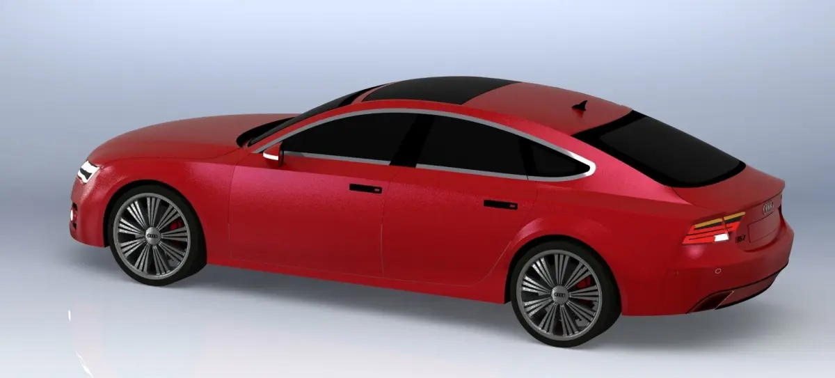 This is the Audi RS7 2015 modeled in SolidWorks 2020 and rendered in Photoview 360. The car has also blueprints in the main body. It is a surface modeling and useful for learning or improving surface modeling skills. Sketches are not fully defined but tried to match accurately with the blueprints.