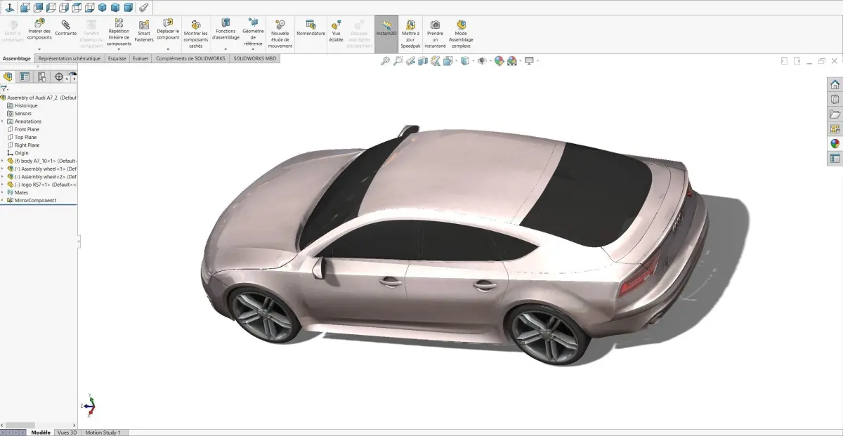Audi Rs7 3D model , thanks to clicking on this model of Audi Rs 7 , You can find many format of the files do you want , if you are game creator you can integer this model to your app using the format included.I you want to model this step by step with Solidworks , I invent you to click on this link to start learning : https://youtu.be/SEAlp1jUzWs?list=PLQl9vsO6sGSk4w_81MyWYMgRrLs5htIetthanks in advance