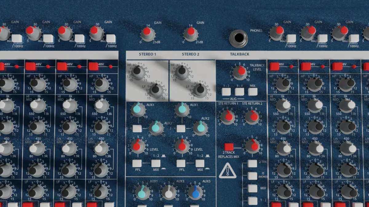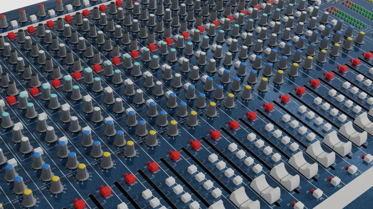 This model of an audio mixer has got 24 channels.Modelling was based on an actual product and accuracy was the aim. There might be a few minor errors, additions or missing elements, but it should be able to fulfil any rendering need.This is a high polygon model. It will not work smoothly in a game engine. There will be a low polygon version available soon.A native Blender file is also included and contains all the textures packed into the file.