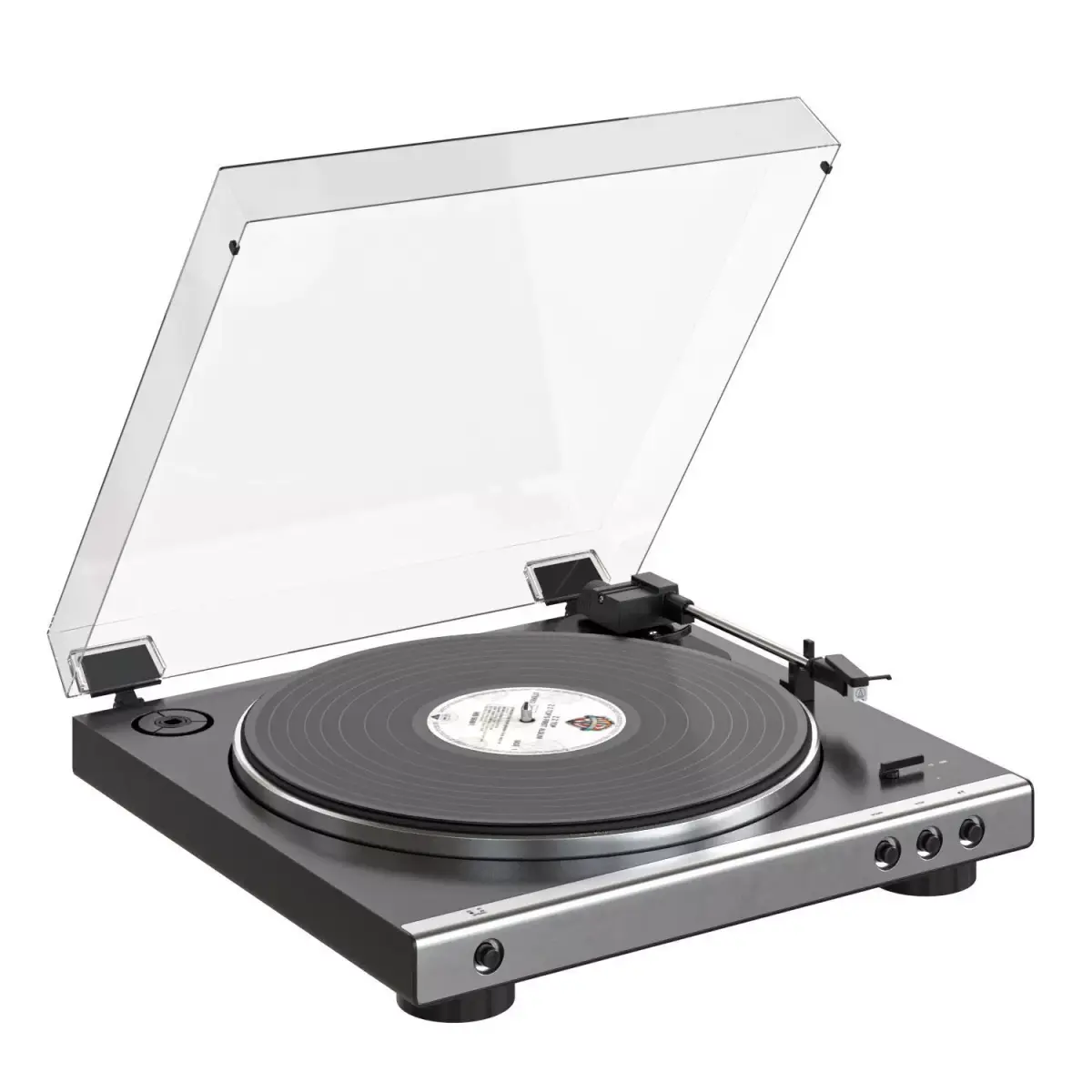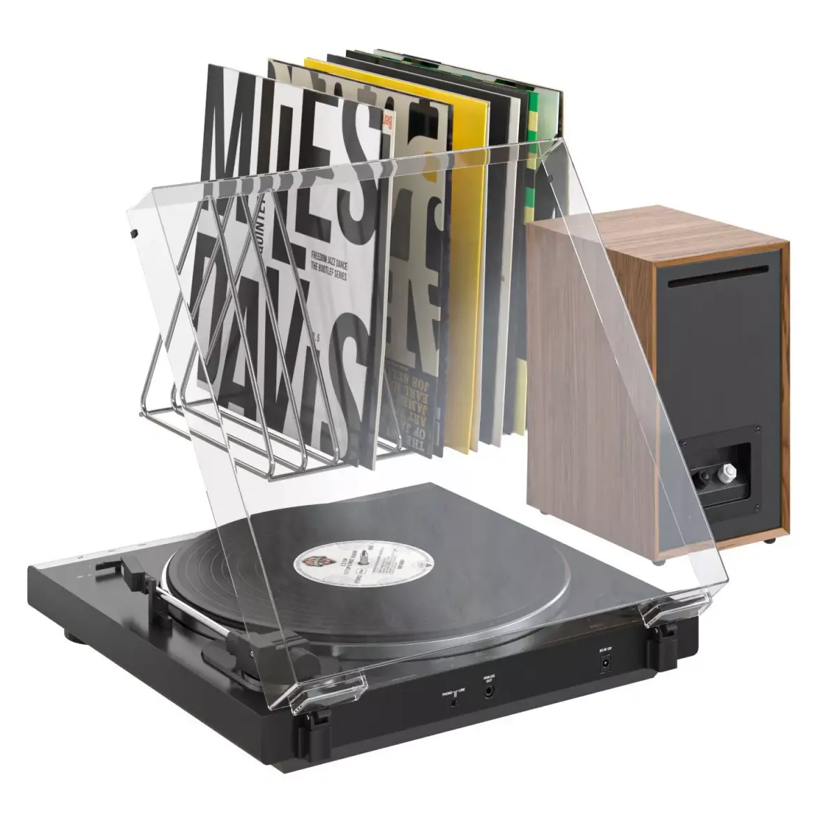 Audio-Technica AT-LP60X vinyl turntable with speakers and records.