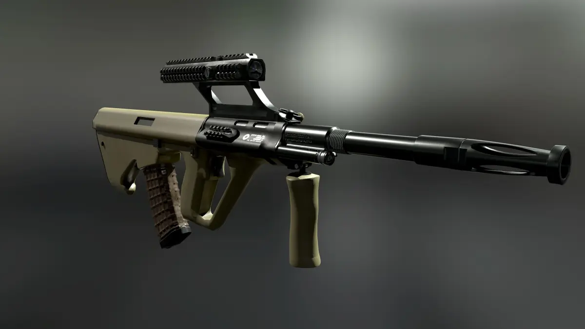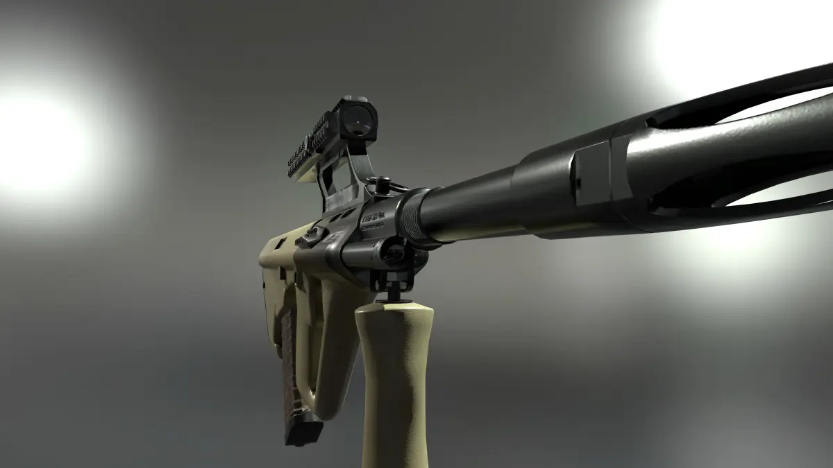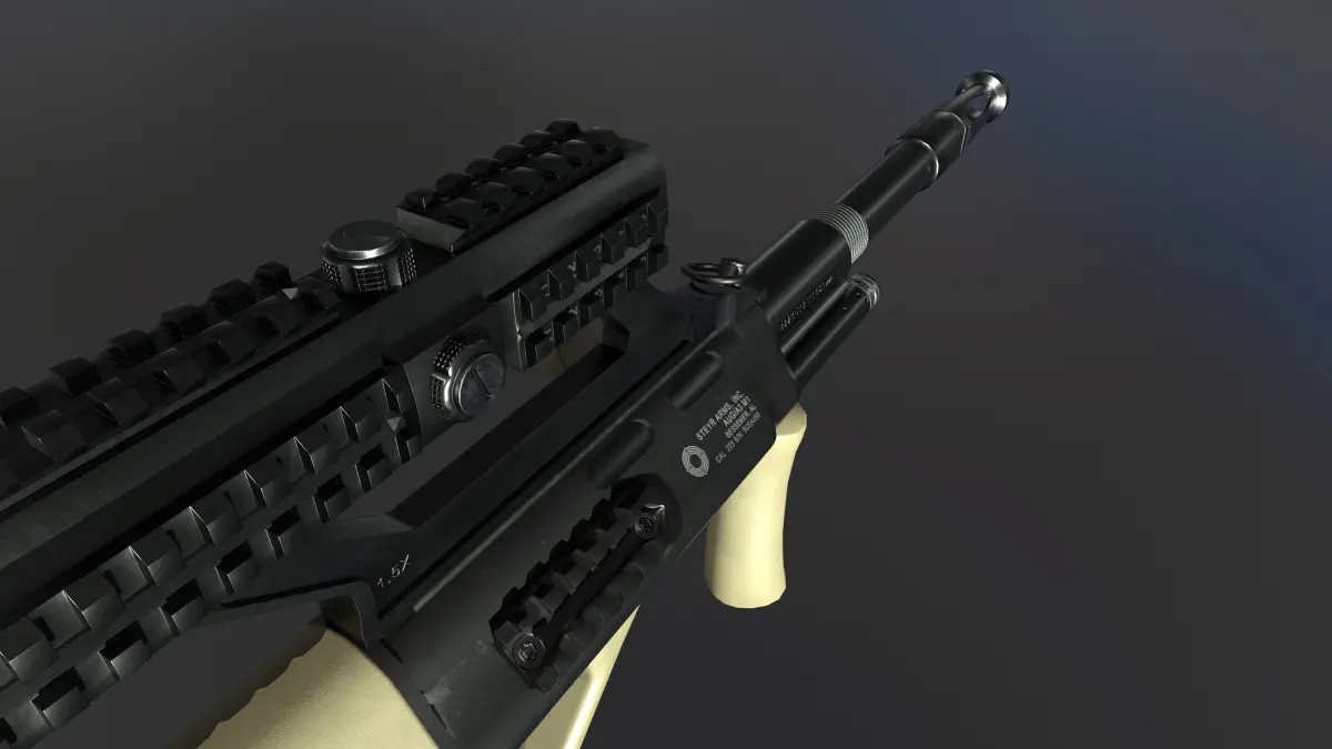Austrian bullpup .223 rem (5.56x45) caliber assault rifle. FPS game ready model within textures, such as: base colour, normals, roughness, metallic, AO.